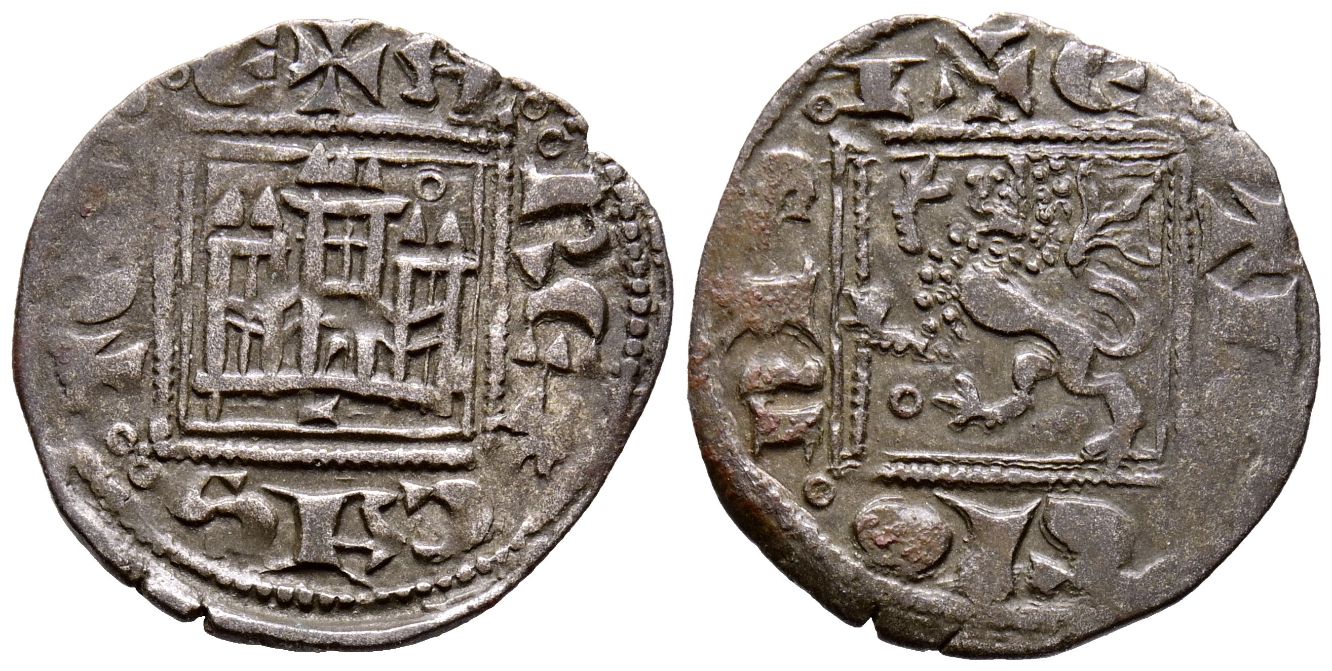 ALFONSO XI (1312-1350). Dinero Novén. (Ve. 0,94g/18mm). León. (Imperatrix A11:1.12; FAB-357.2). Anv: Castillo con roel encima de la torre derecha, debajo L, todo dentro de gráfila cuadrada, alrededor leyenda: ALF REX CASTELLE. Rev: León rampante a izquierda con roel delante, alrededor leyenda: ET LEGIONIS. MBC.