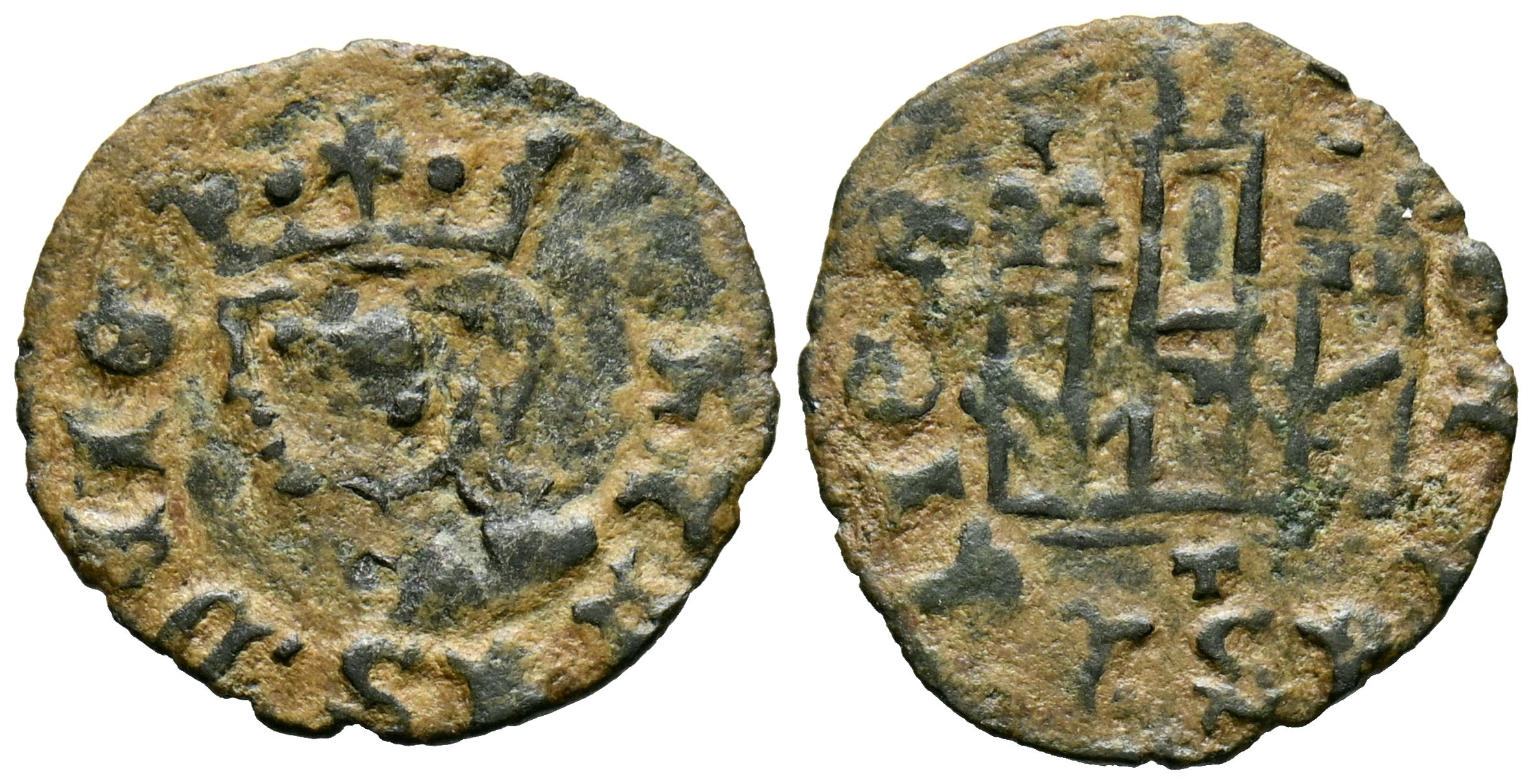 JUAN II (1406-1454). Toledo. Cornado. (Ve. 0,68g/17mm). (Imperatrix J2:4.2, FAB 634). Anv: Busto coronado de Juan II a izquierda, alrededor leyenda: IOANES DEI GR. Rev: Castillo, debajo T, alrededor leyenda: IOANES DEI GR. MBC-.