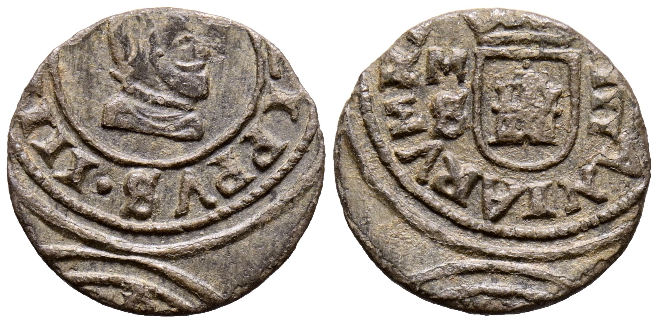 FELIPE IV (1621-1665). 4 Maravedís. (Ae. 0,86g/15mm). Fecha no visible. Madrid S. (Cal-2019-Tipo 76). MBC+. Acuñación desplazada.