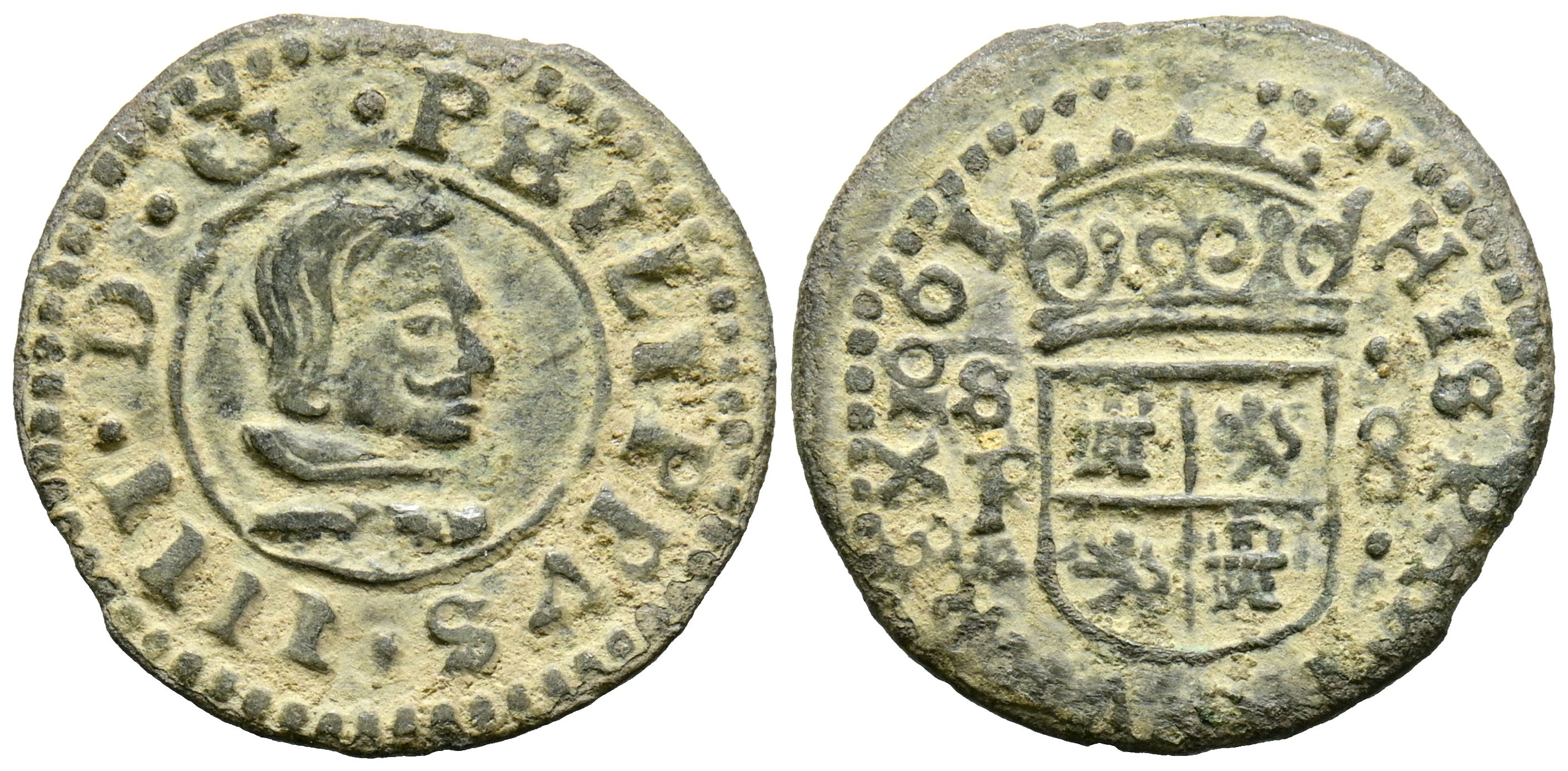 FELIPE IV (1621-1665). 8 Maravedís. (Ae. 1,81g/20mm). 1661. Sevilla R. (Cal-2019-405). MBC. Escasa e interesante.