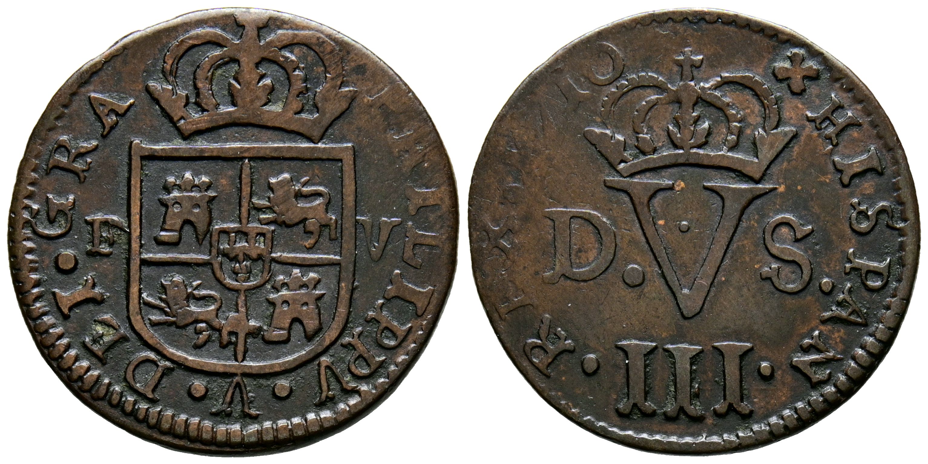 FELIPE V (1700-1746). 1 Treseta. (Ae. 3,05g/22mm). 1710. Valencia. (Cal-2019-9). MBC.
