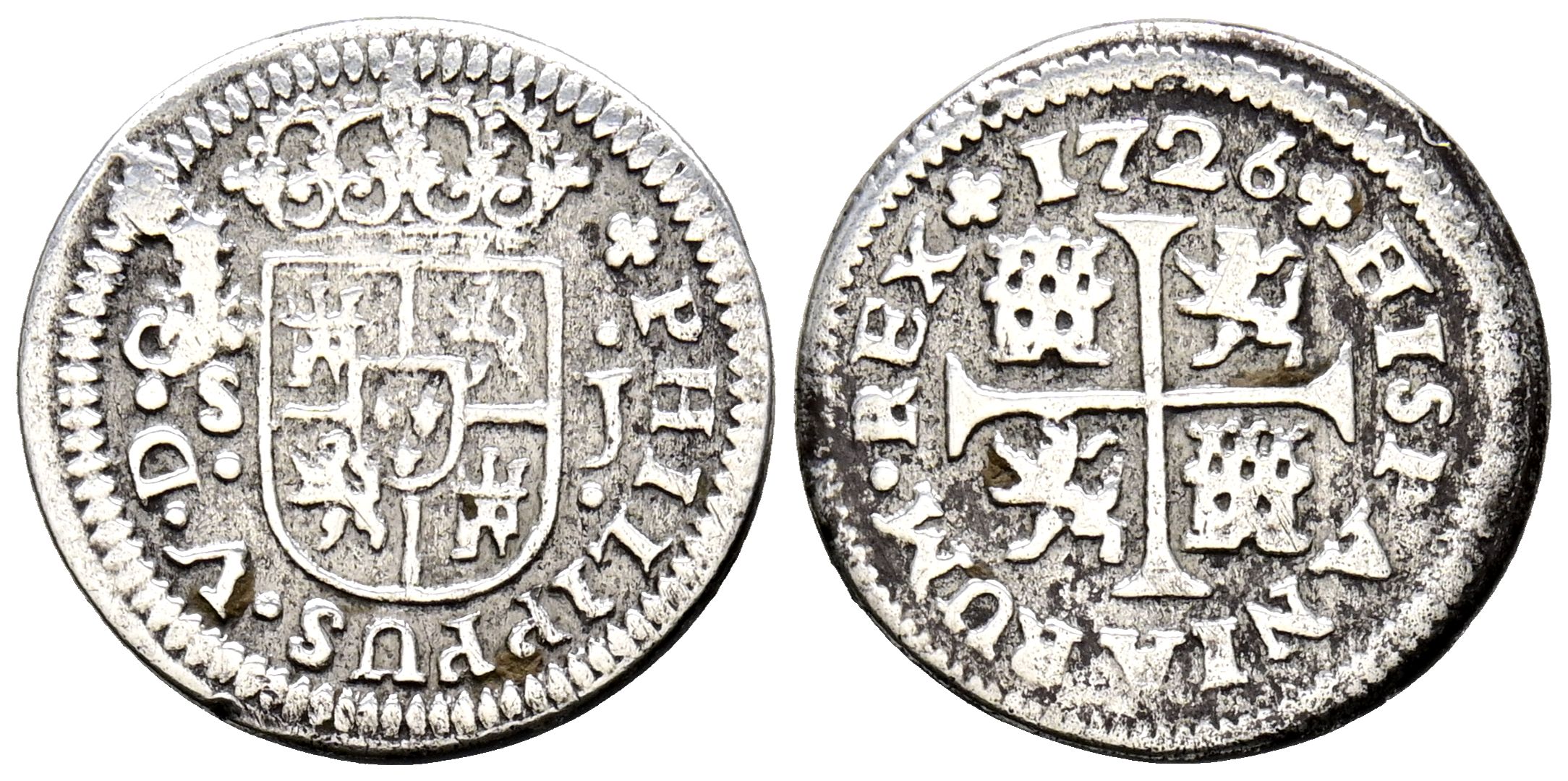 FELIPE V (1700-1746). 1/2 Real. (Ar. 1,31g/14mm). 1726. Sevilla J. (Cal-2019-335). BC+.