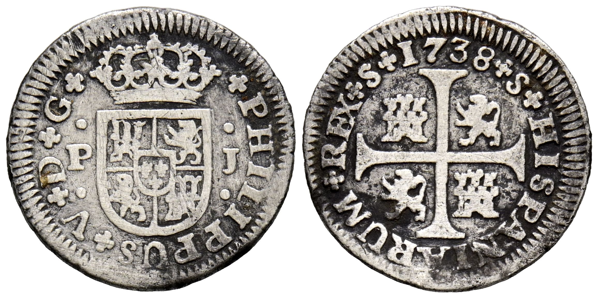 FELIPE V (1700-1746). 1/2 Real. (Ar. 1,27g/15mm). 1738. Sevilla PJ. (Cal-2019-345). MBC.
