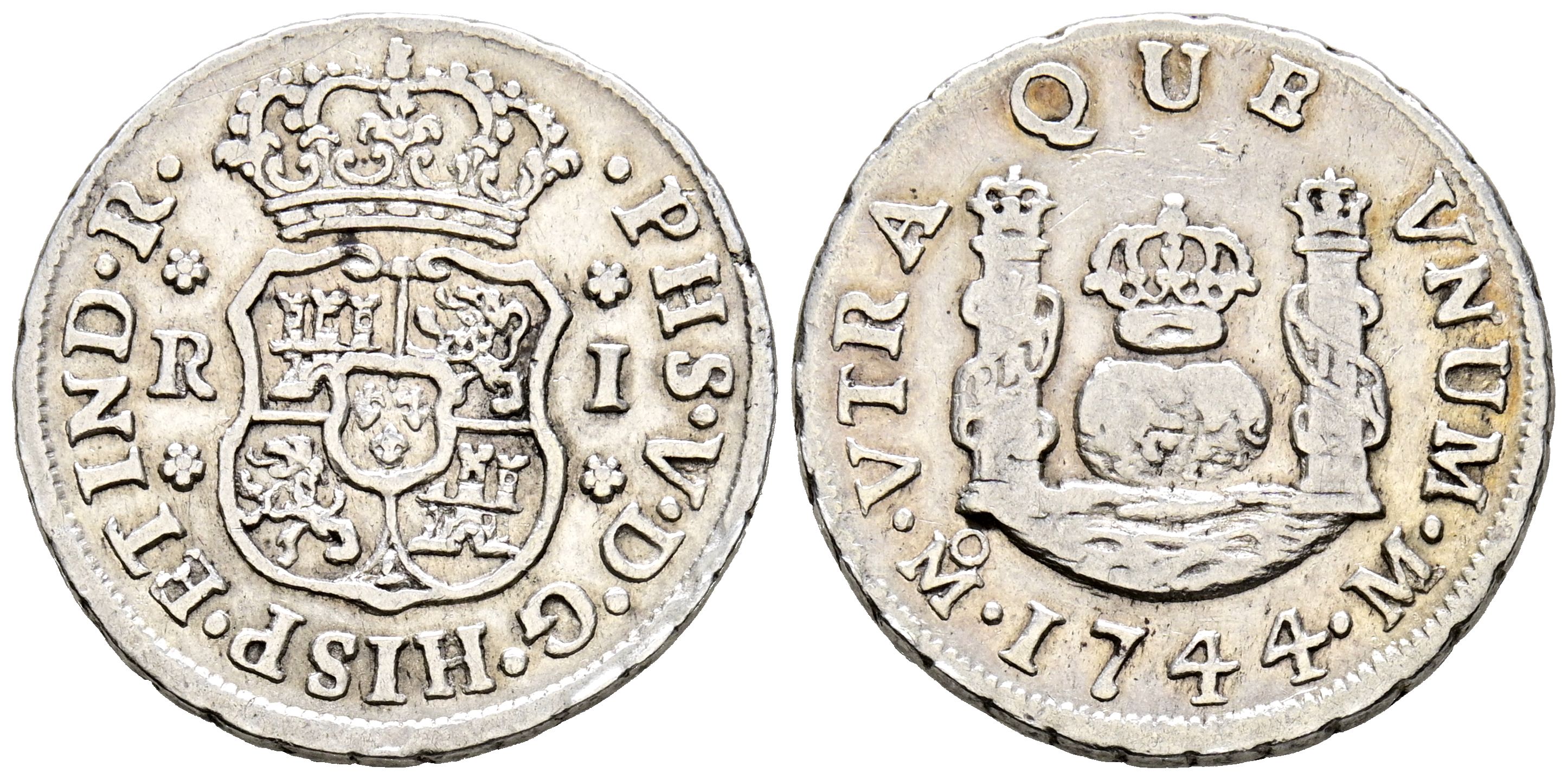 FELIPE V (1700-1746). 1 Real. (Ar. 3,34g/21mm). 1744. México M. (Cal-2019-521). MBC.