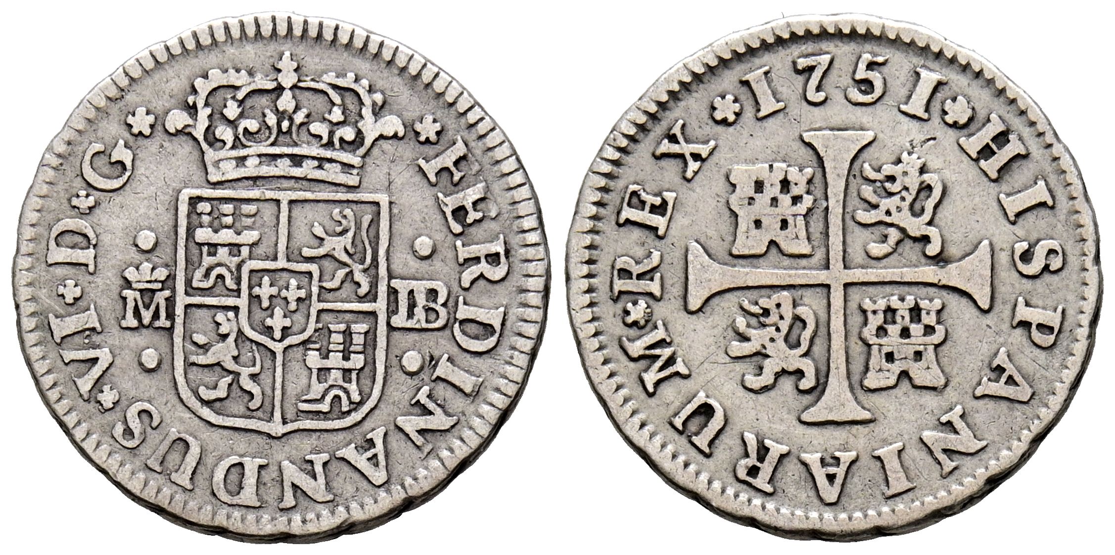 FERNANDO VI (1746-1759). 1/2 Real. (Ar. 1,50g/16mm). 1751. Madrid JB. (Cal-2019-70). MBC.