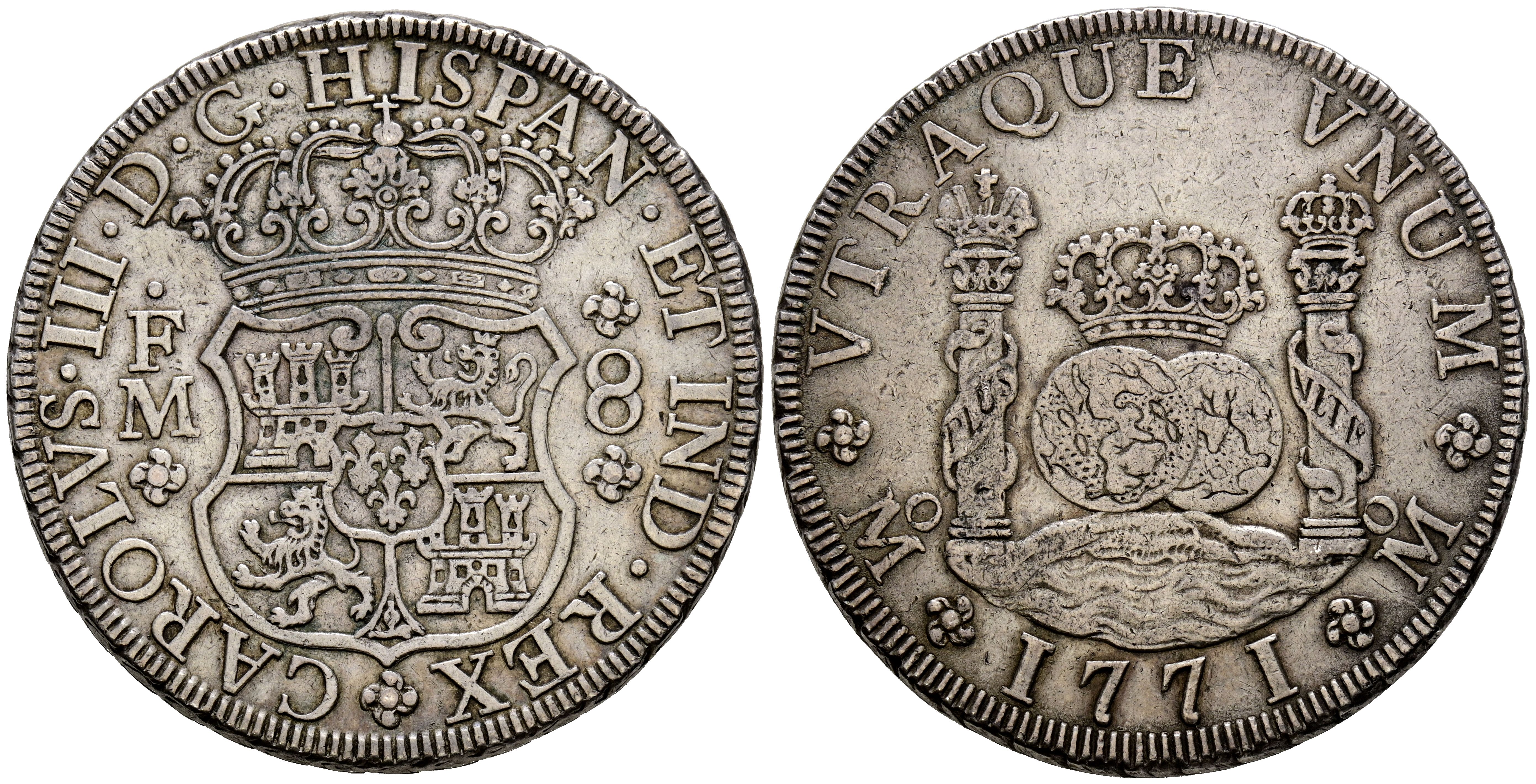 CARLOS III (1759-1788). 8 Reales. (Ar. 26,86g/39mm). 1771. México FM. (Cal-2019-1103). MBC.
