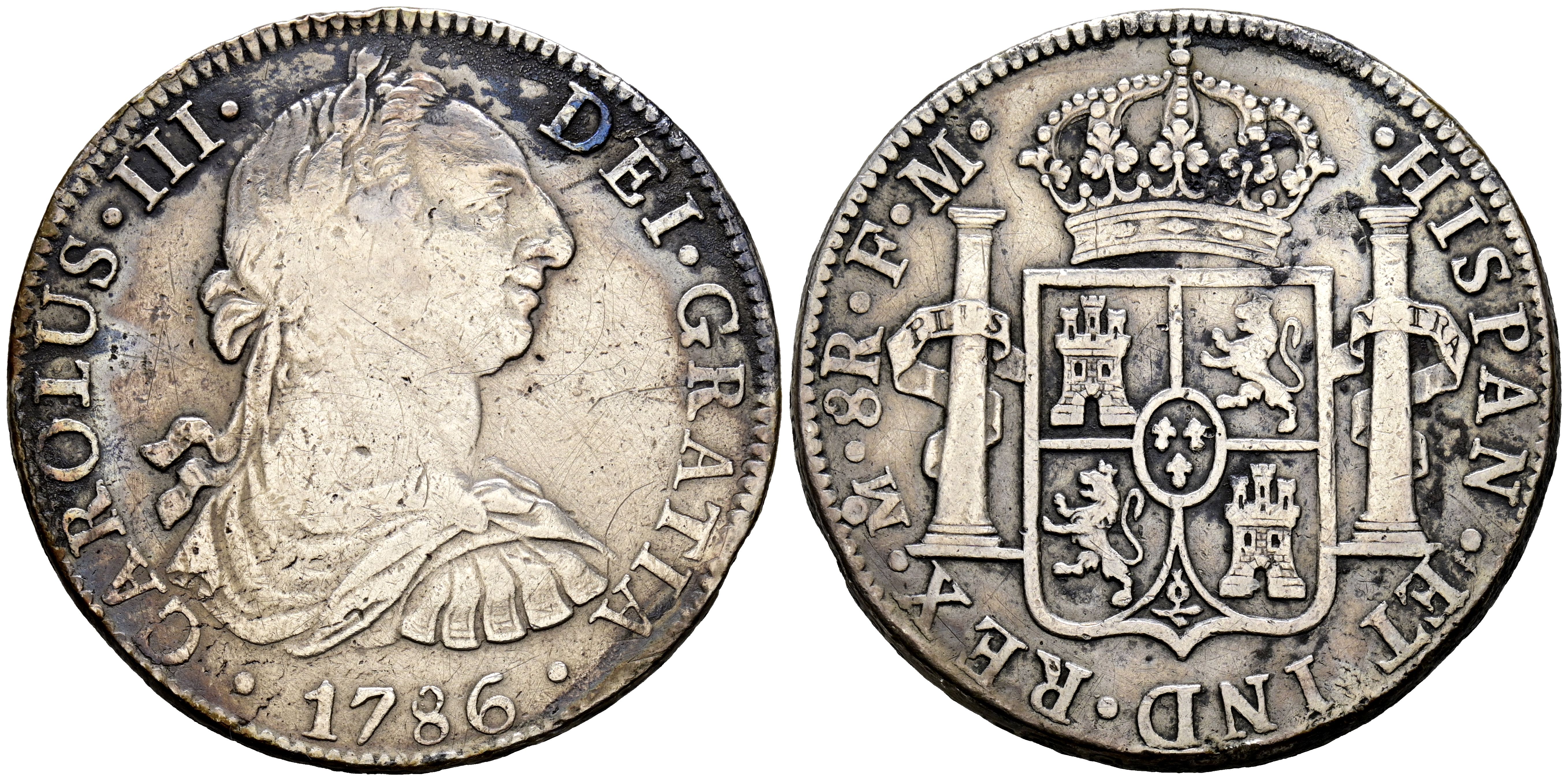 CARLOS III (1759-1788). 8 Reales. (Ar. 26,41g/38mm). 1786. México FM. (Cal-2019-1129). MBC. Limpiada pero con pátina adquirida.