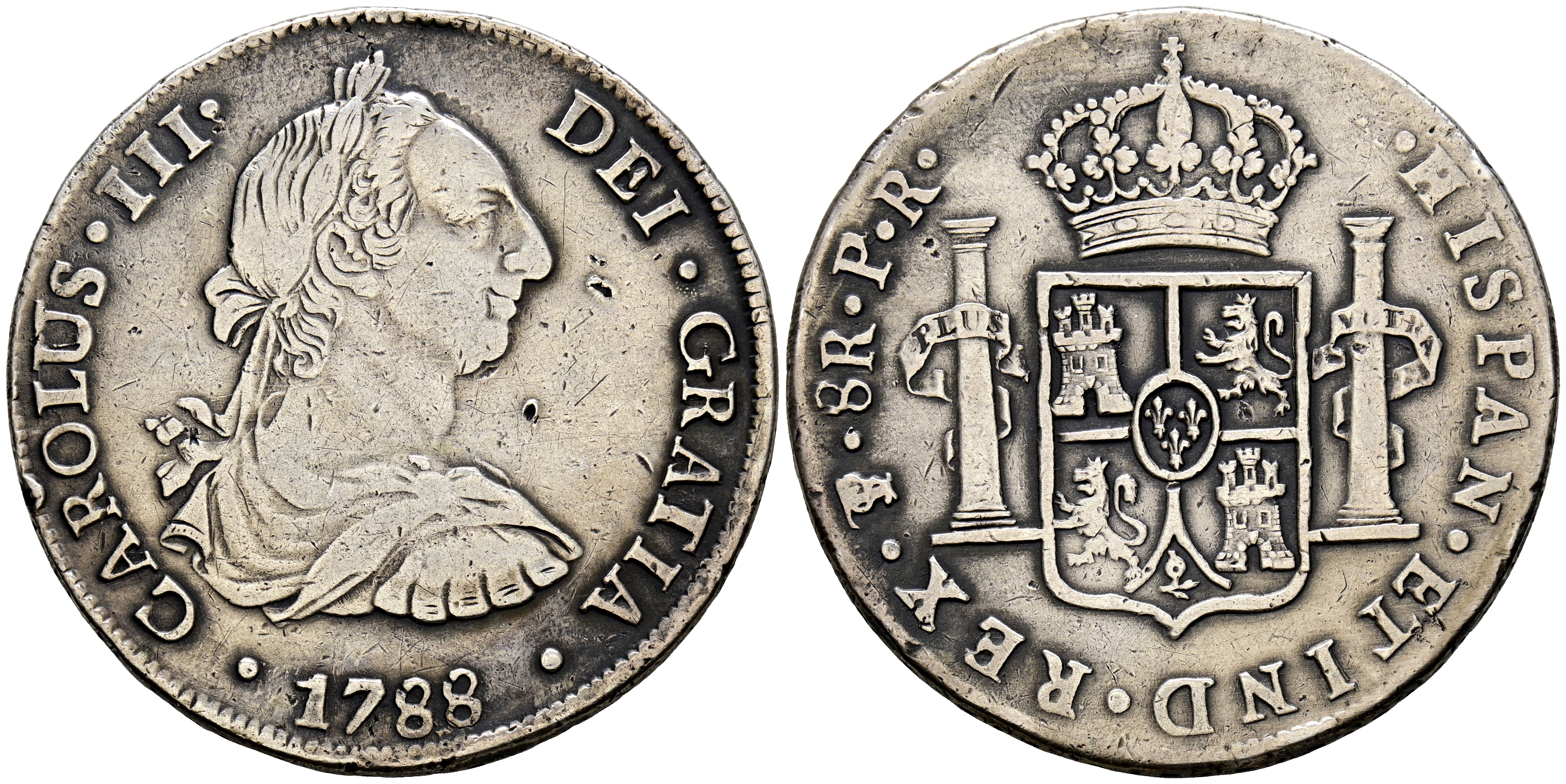 CARLOS III (1759-1788). 8 Reales. (Ar. 26,72g/42mm). 1788. Potosí PR. (Cal-2019-1195). MBC. Tono.