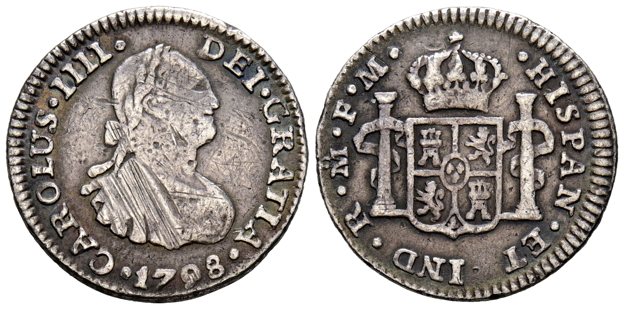 CARLOS IV (1788-1808). 1/2 Real. (Ar. 1,62g/17mm). 1798. México FM. (Cal-2019-282). BC+/ MBC-. Bonito tono.
