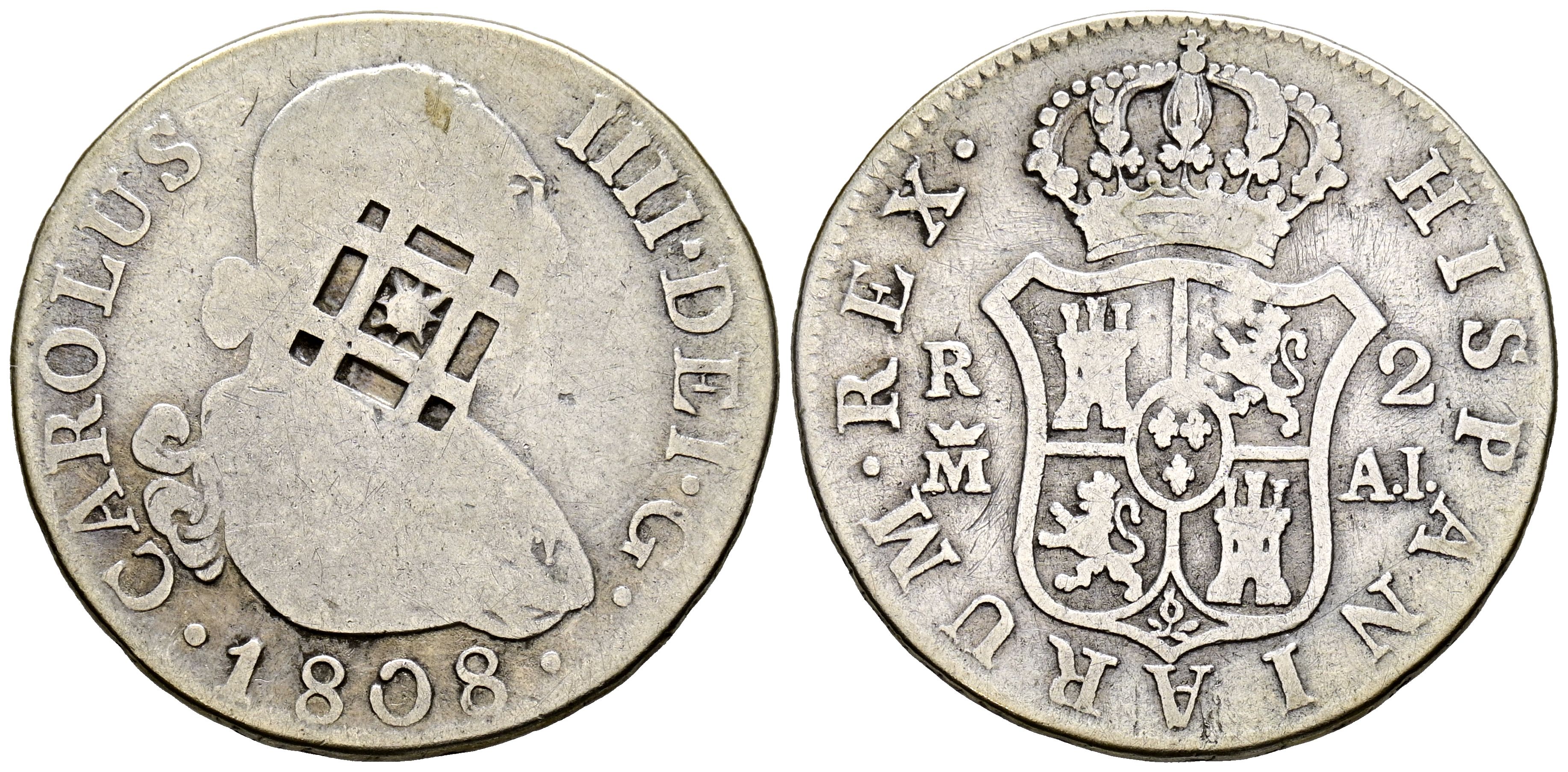 CARLOS IV (1788-1808). 2 Reales (Ar. 5,71g/26mm). 1808. Madrid AI. (Cal-2019-619). Resello Vique (Cuba). BC+.