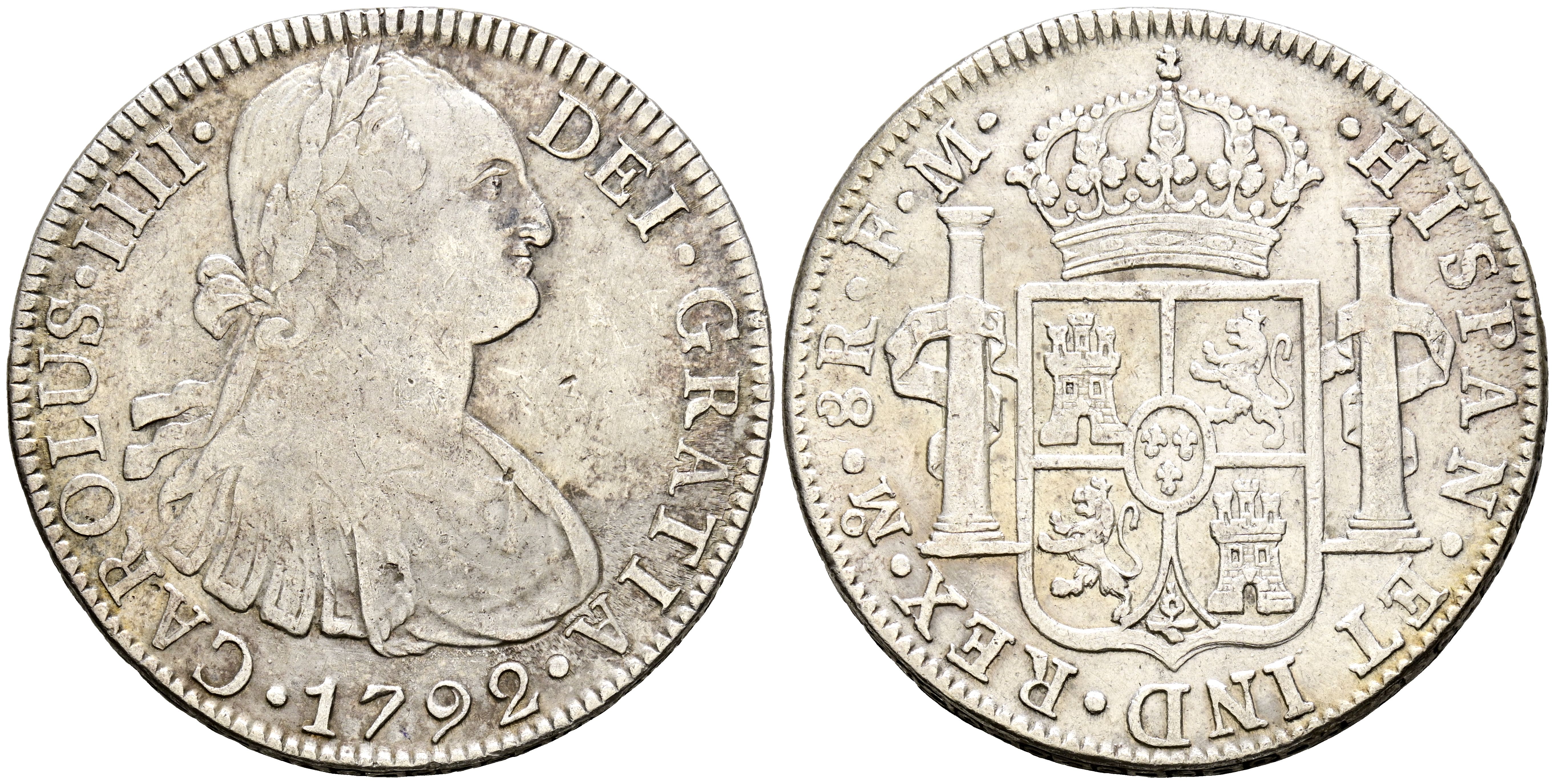 CARLOS IV (1788-1808). 8 Reales. (Ar. 26,77g/38mm). 1792. Mexico FM. (Cal-2019-954). MBC/MBC+.