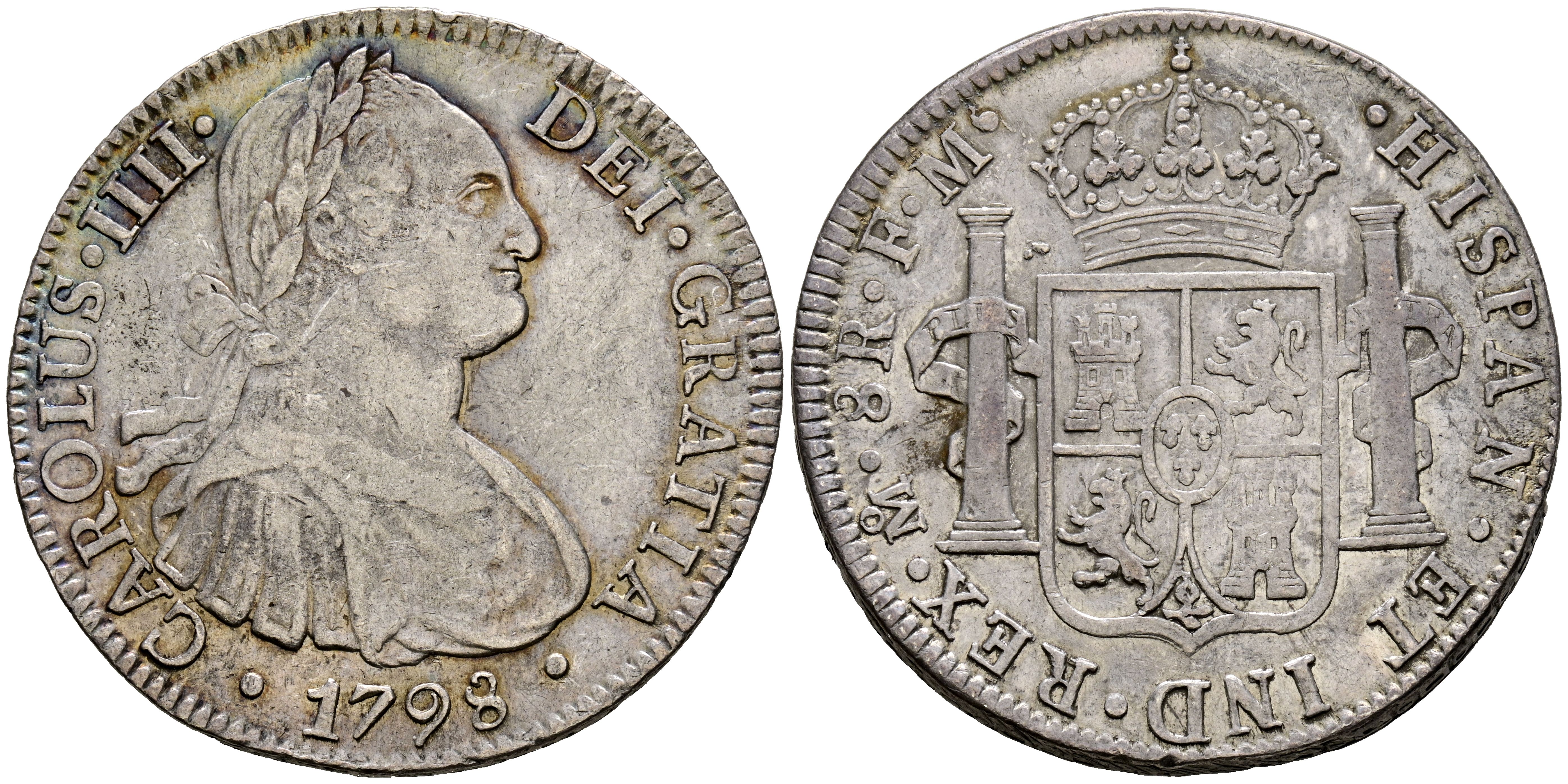 CARLOS IV (1788-1808). 8 Reales. (Ar. 26,89g/39mm). 1798. México FM. (Cal-2019-961). MBC. Ligero tono irisado.