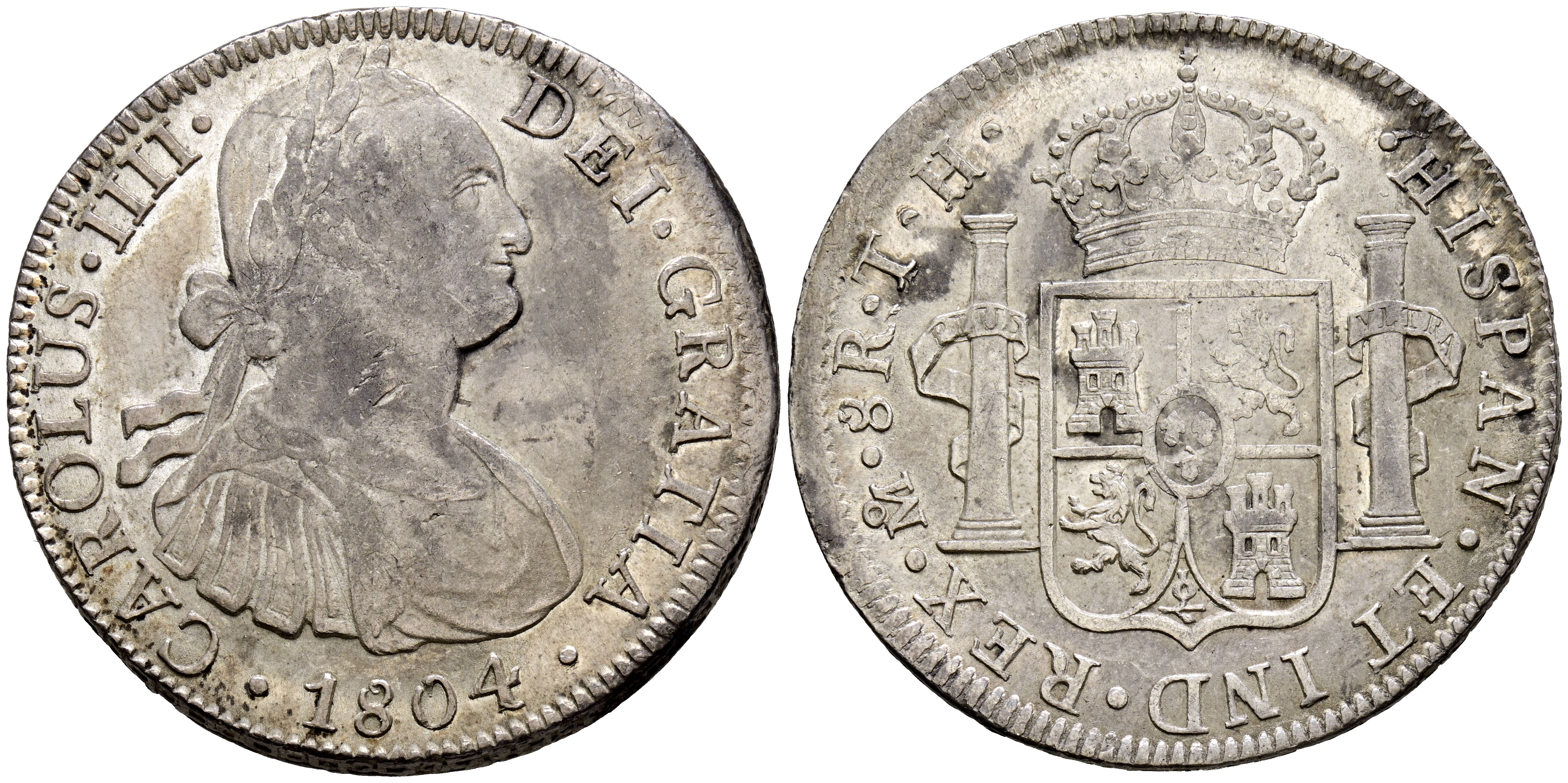 CARLOS IV (1788-1808). 8 Reales. (Ar. 26,96g/40mm). 1804. México TH. (Cal-2019-980). MBC.