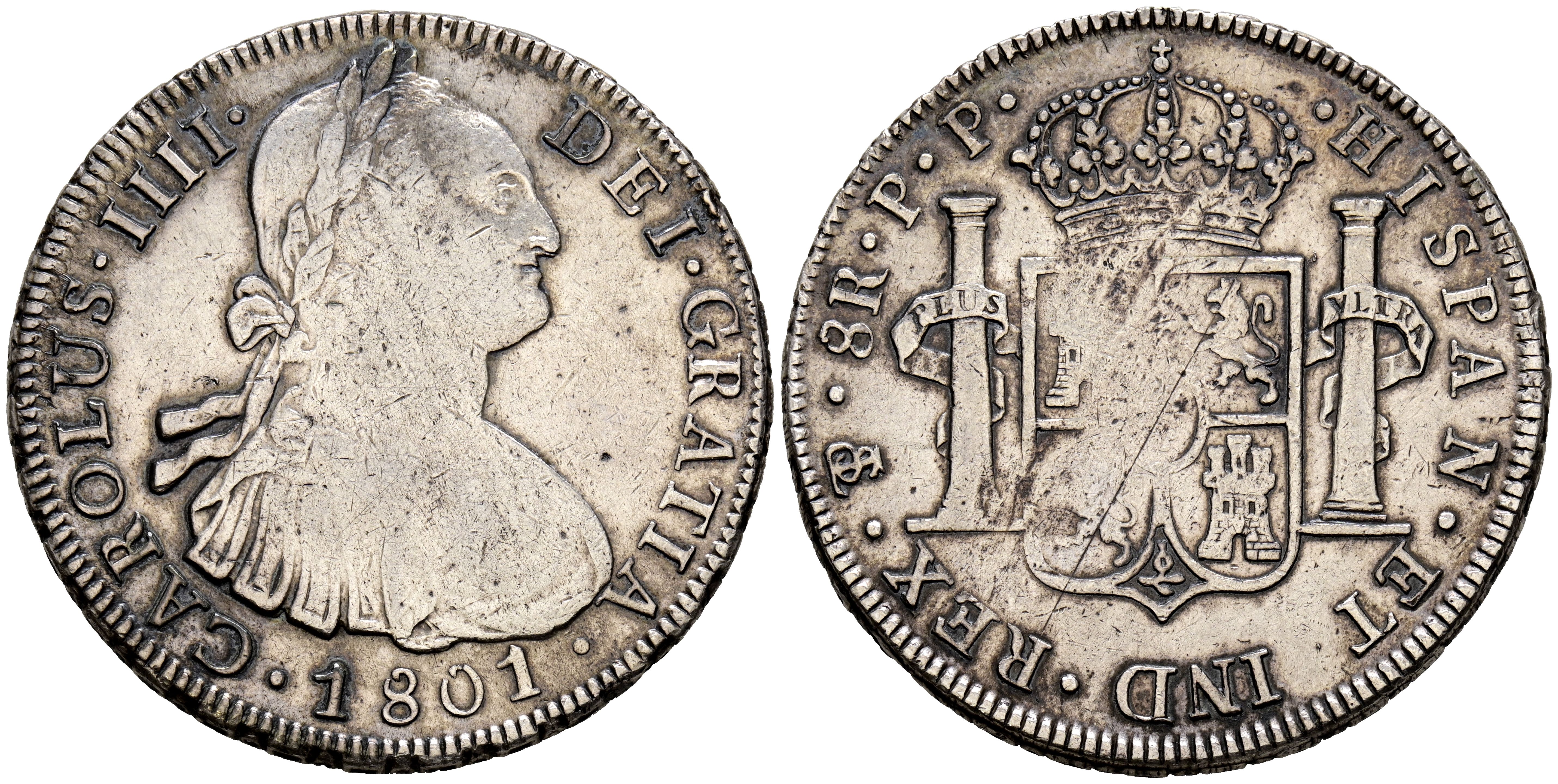 CARLOS IV (1788-1808). 8 Reales (Ar. 26,72g/40mm). 1801. Potosí PP. (Cal-2019-1005). MBC. Bonito tono