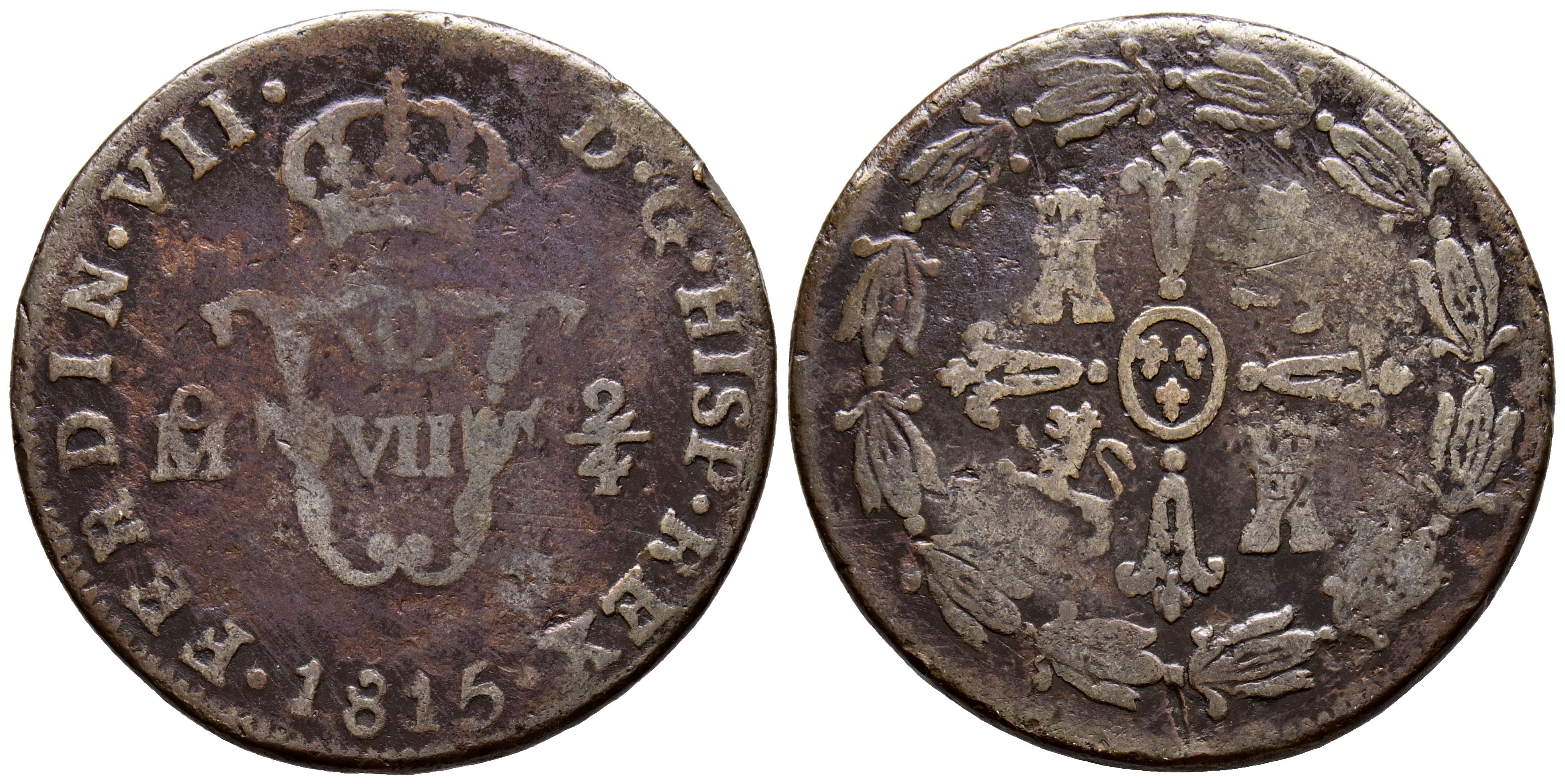 FERNANDO VII (1808-1833). 2/4 De Tlaco (Ae. 6,64g/28mm). 1815. México. (Cal-2019-111). BC-