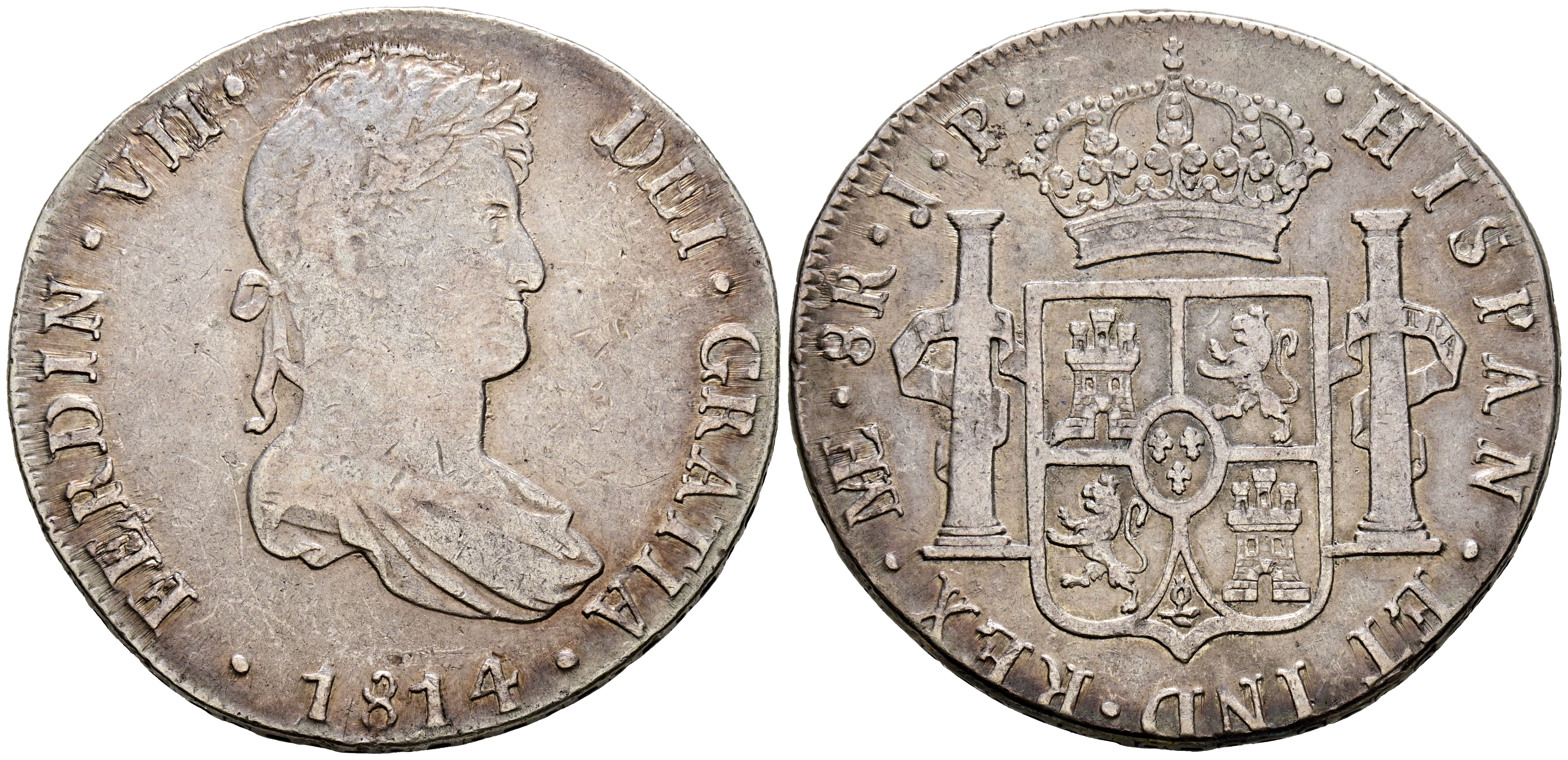 FERNANDO VII (18080-1833). 8 Reales. (Ar. 26,21g/38mm). 1814. Lima JP. (Cal-2019-1247). MBC. Preciosa pátina.