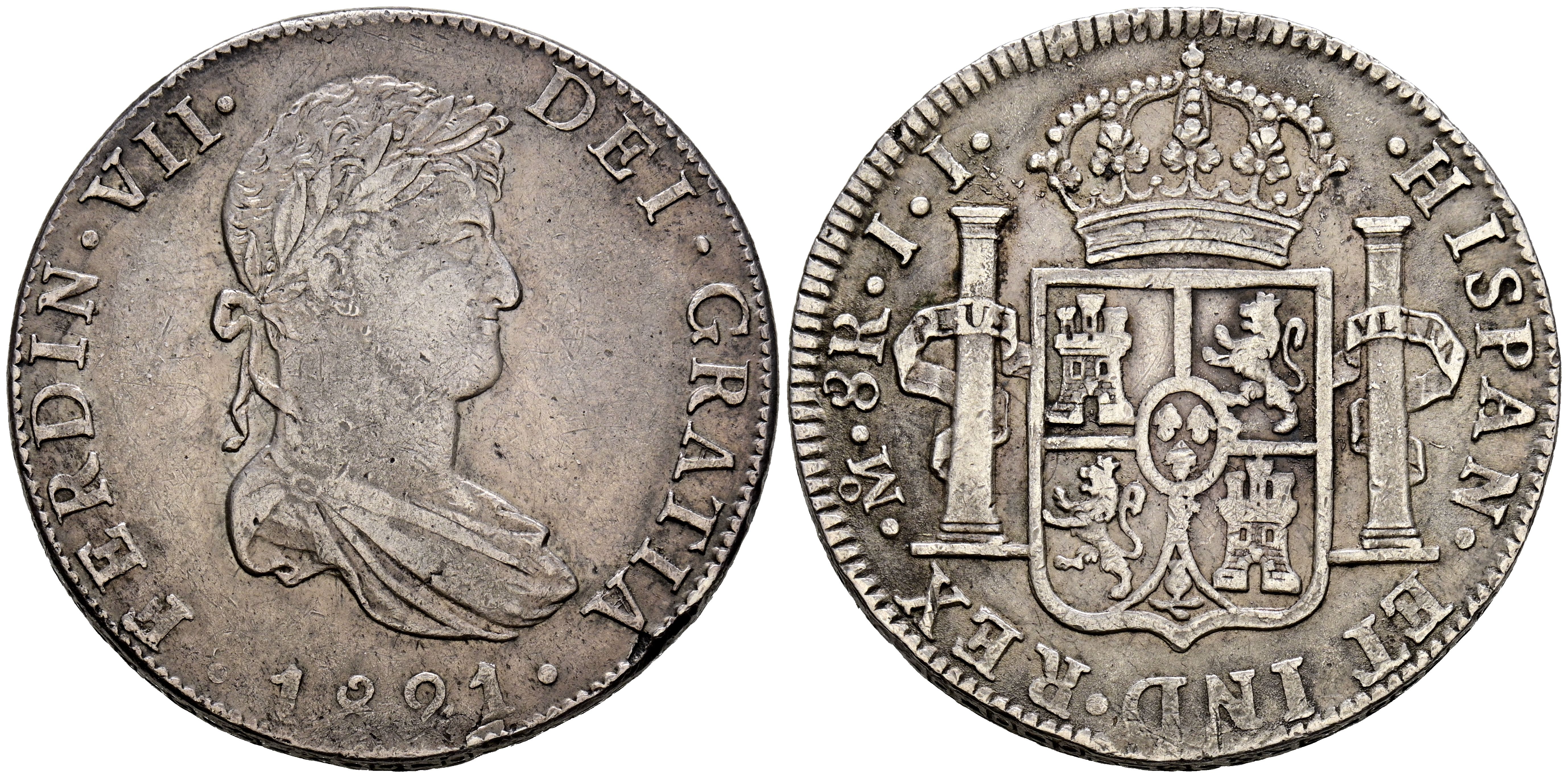 FERNANDO VII (1808-1833). 8 Reales. (Ar. 27,00g/39mm). 1821. México JJ. (Cal-2019-1336). MBC-. Limpiado.