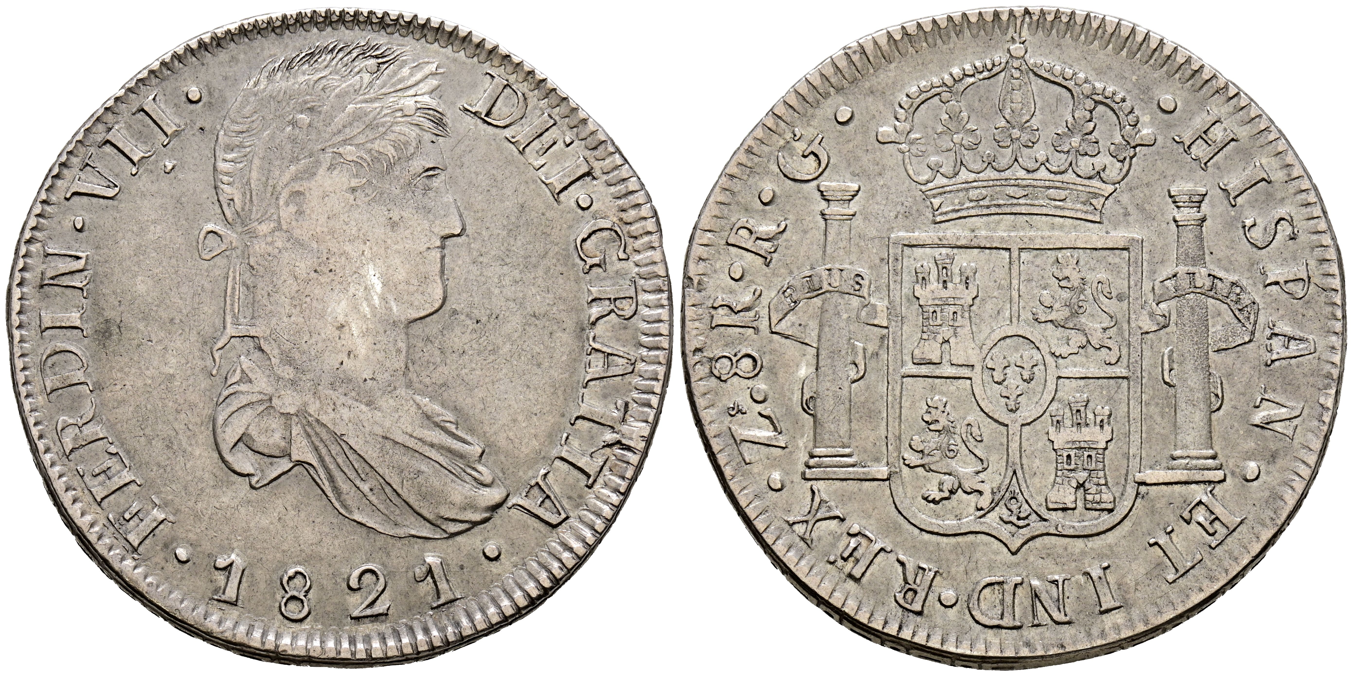 FERNANDO VII (1808-1833). 8 Reales. (Ar. 26,84g/39mm). 1821. Zacatecas RG. (Cal-2019-1465). MBC+.