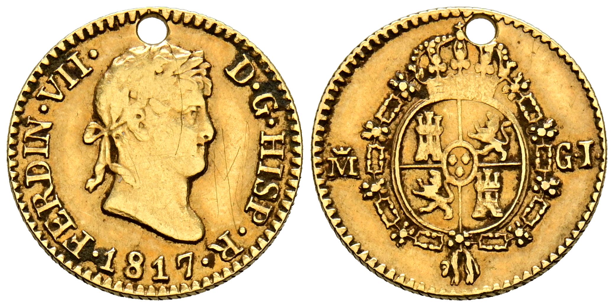 FERNANDO VII (1808-1833). 1/2 Escudo. (Au. 1,69g/14mm). 1817. Madrid GJ. (Cal-2019-1486). MBC-. Perforación a las 12h.