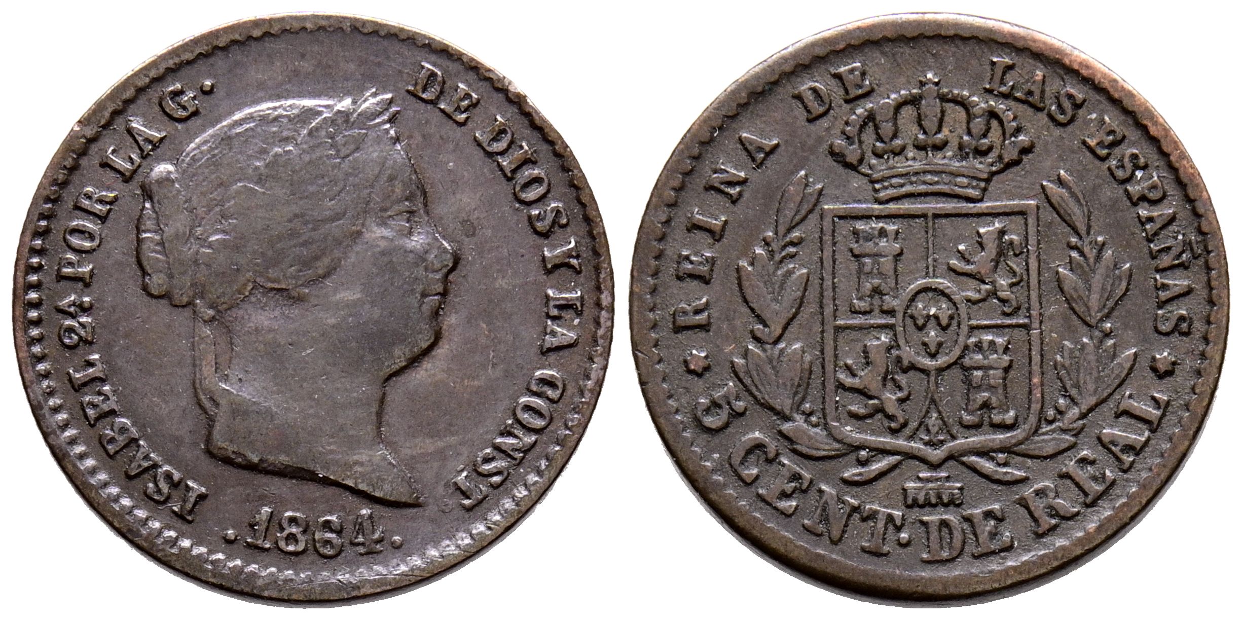 ISABEL II (1833-1868). 5 Céntimos de Real. (Ae. 1,86g/17mm). 1864. Segovia. (Cal-2019-169). MBC.
