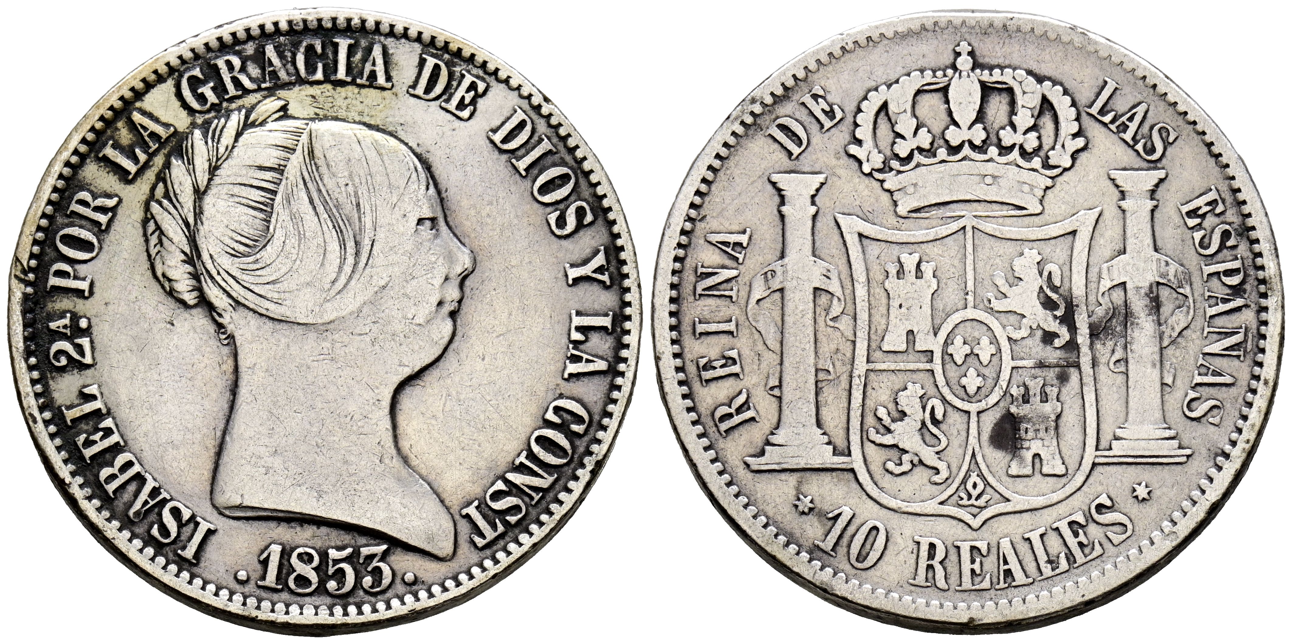 ISABEL II (1833-1868). 10 Reales. (Ar. 12,82g/29mm). 1853. Madrid. (Cal-2019-528). MBC-. Limpiado.