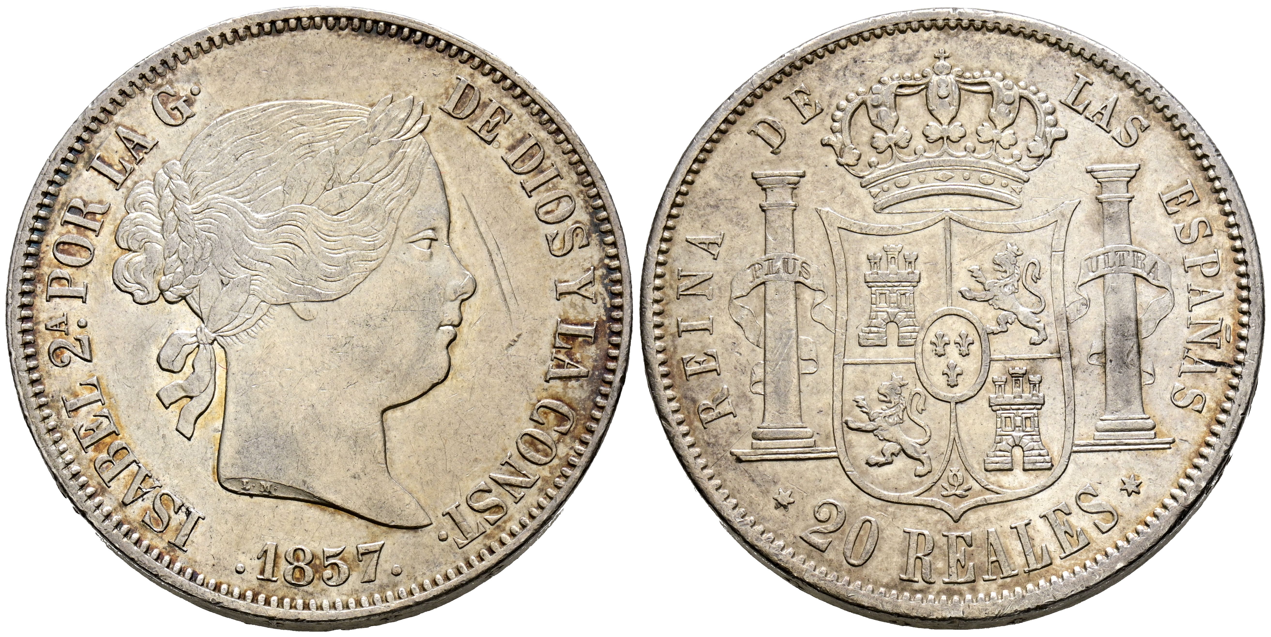 ISABEL II (1833-1868). 20 Reales. (Ar. 26,04g/37mm). 1857. Madrid. (Cal-2019-614). EBC-. Restos de brillo original.