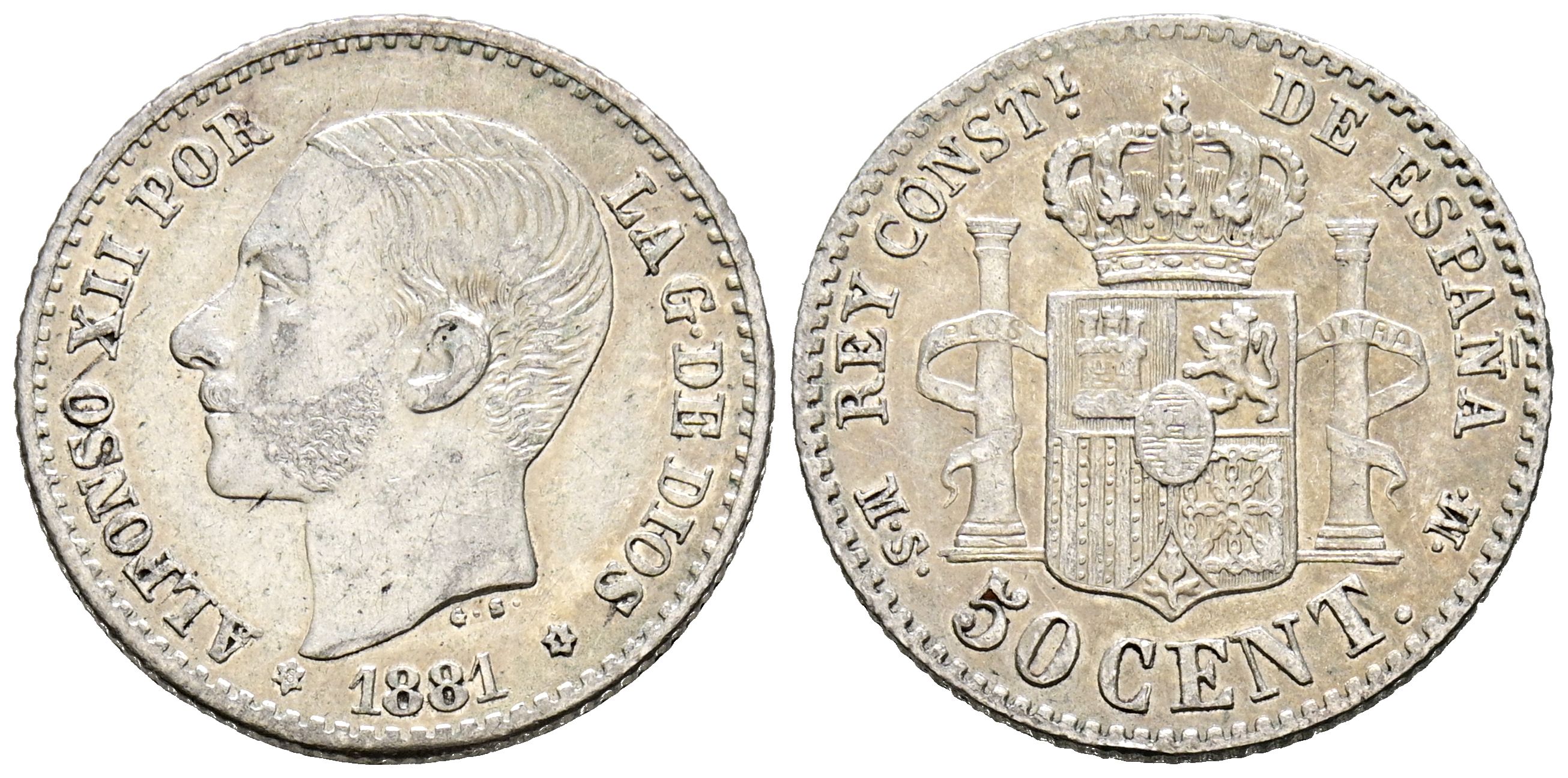 ALFONSO XII (1874-1885). 50 Céntimos. (Ar. 2,43g/18mm). 1881. *8-1. Madrid MSM. (Cal-2019-12). MBC+. Bonito tono.