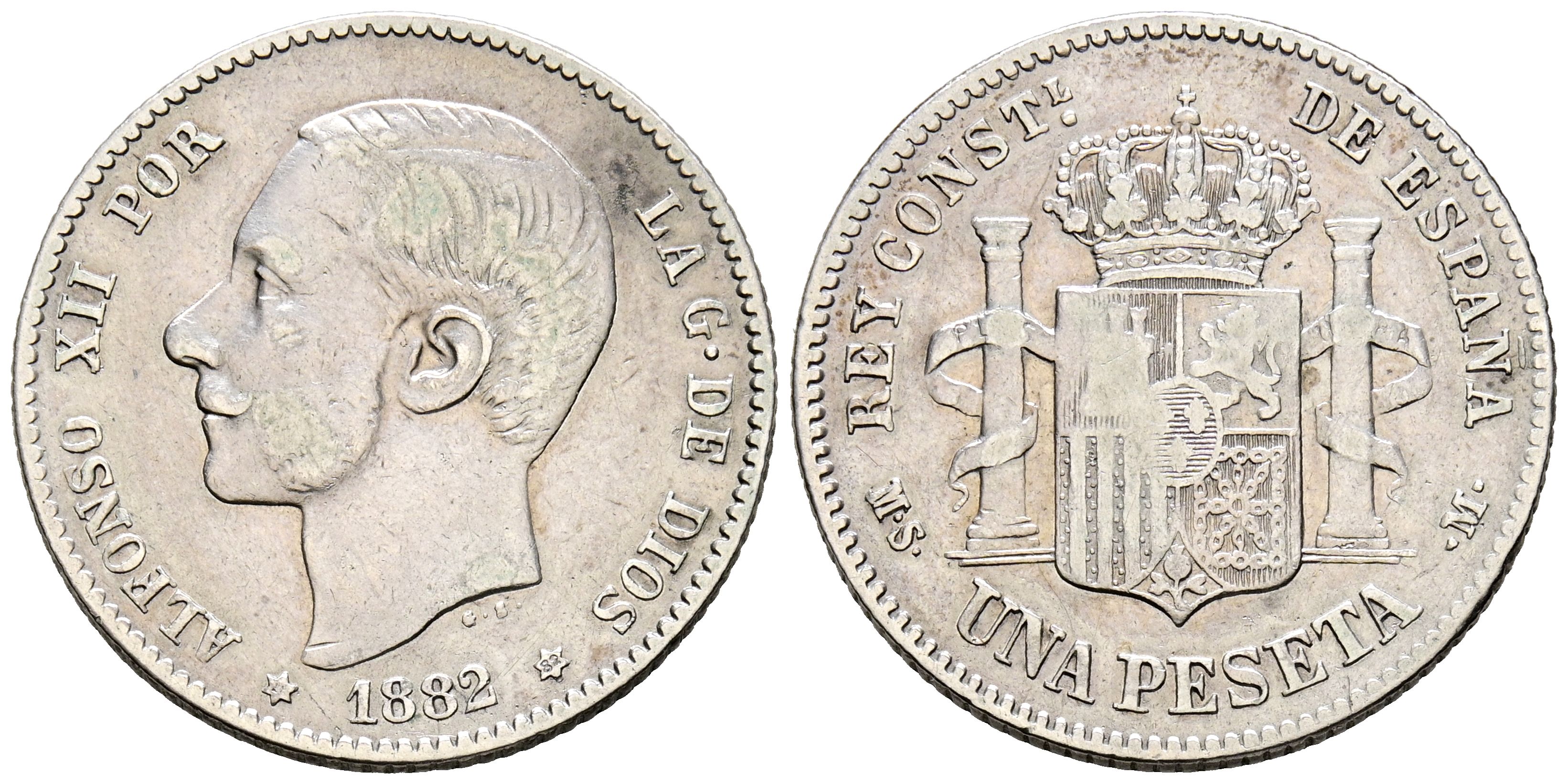 ALFONSO XII (1874-1885). 1 Peseta. (Ar. 4,97/23mm). 1882 *18-82. Madrid MSM. (Cal-2019-20). MBC-. Primera estrella algo más floja. Escasa.