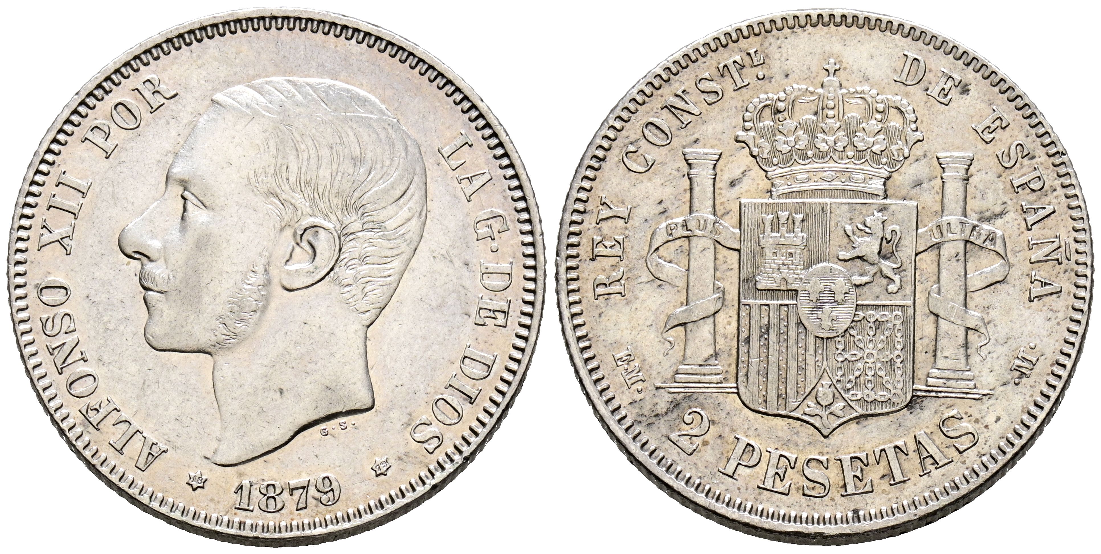 ALFONSO XII (1874-1885). 2 Pesetas. (Ar. 9,97g/27mm). 1879 *18-79. Madrid EMM. (Cal-2019-26). MBC+.