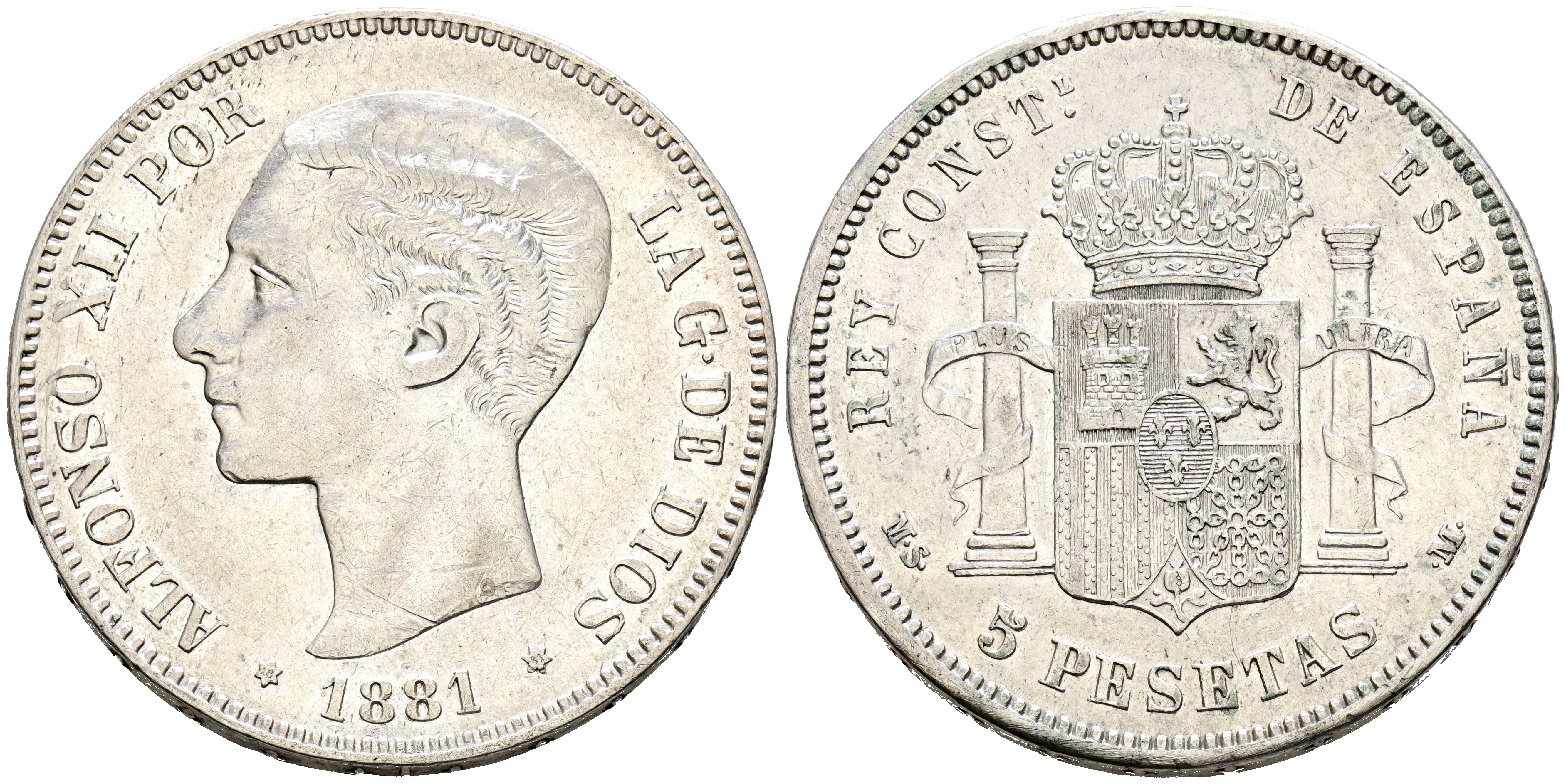 ALFONSO XII (1874-1885). 5 Pesetas. (Ar. 24,83g/37mm). 1881 *18-81. Madrid MSM. (Cal-2019-44). MBC+.