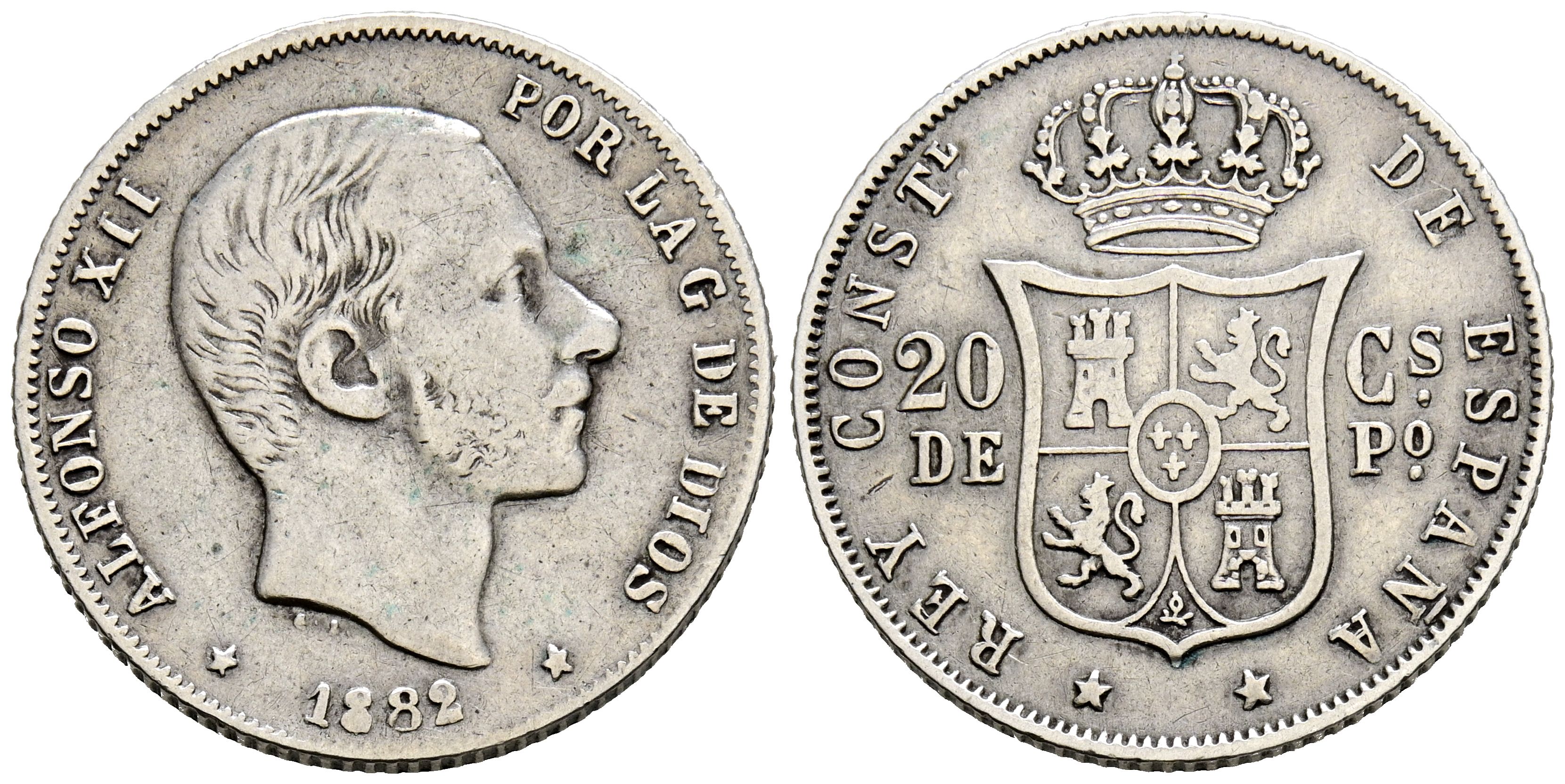 ALFONSO XII (1874-1885). 20 Centavos. (Ar. 5,05g/23mm). 1882. Manila. (Cal-2019-107). MBC-.