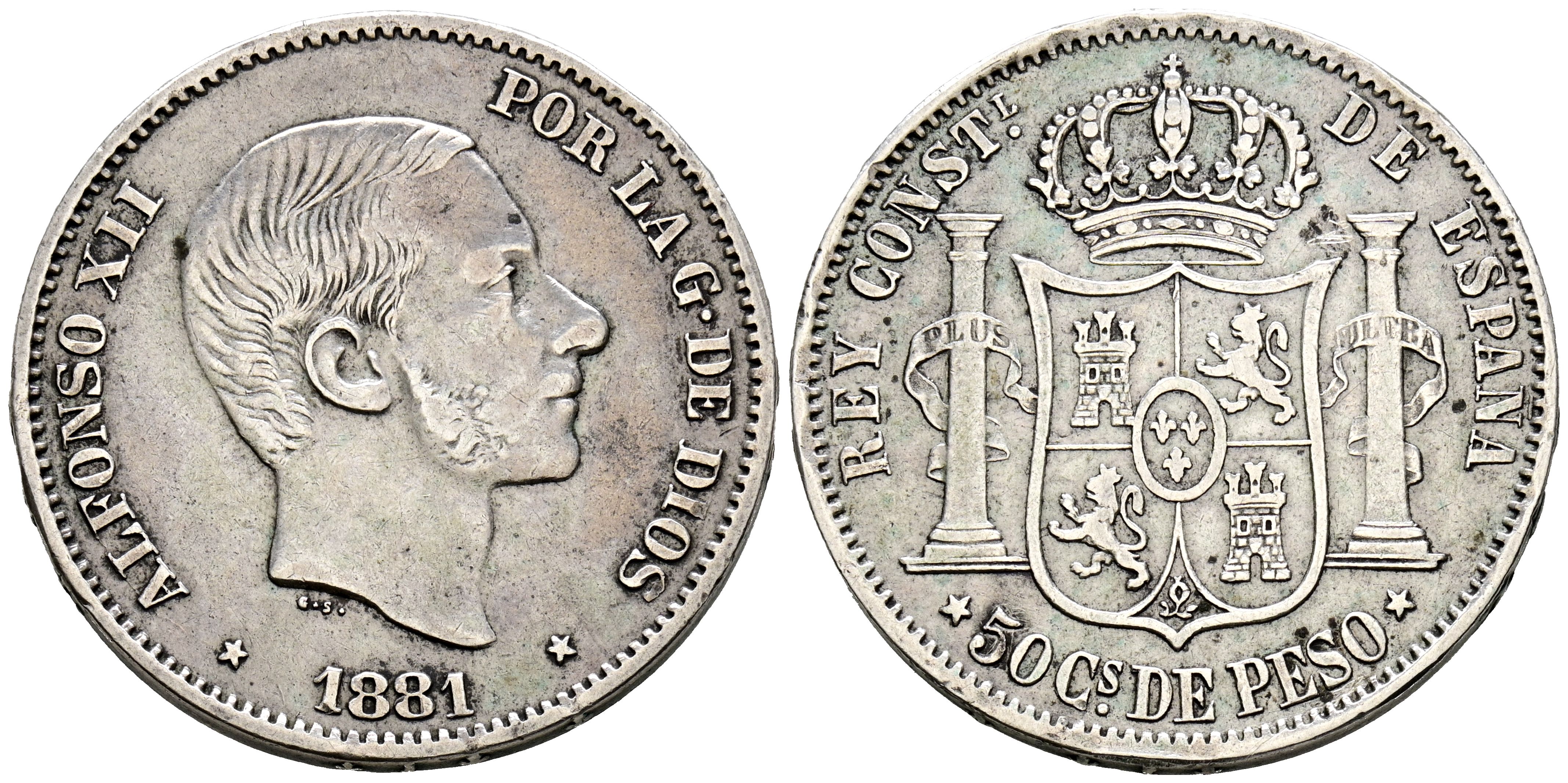ALFONSO XII. (1874-1885). 50 Centavos. (Ar. 12,91g/30mm). 1881. Manila. (Cal-2019-114). MBC. Bonito tono.