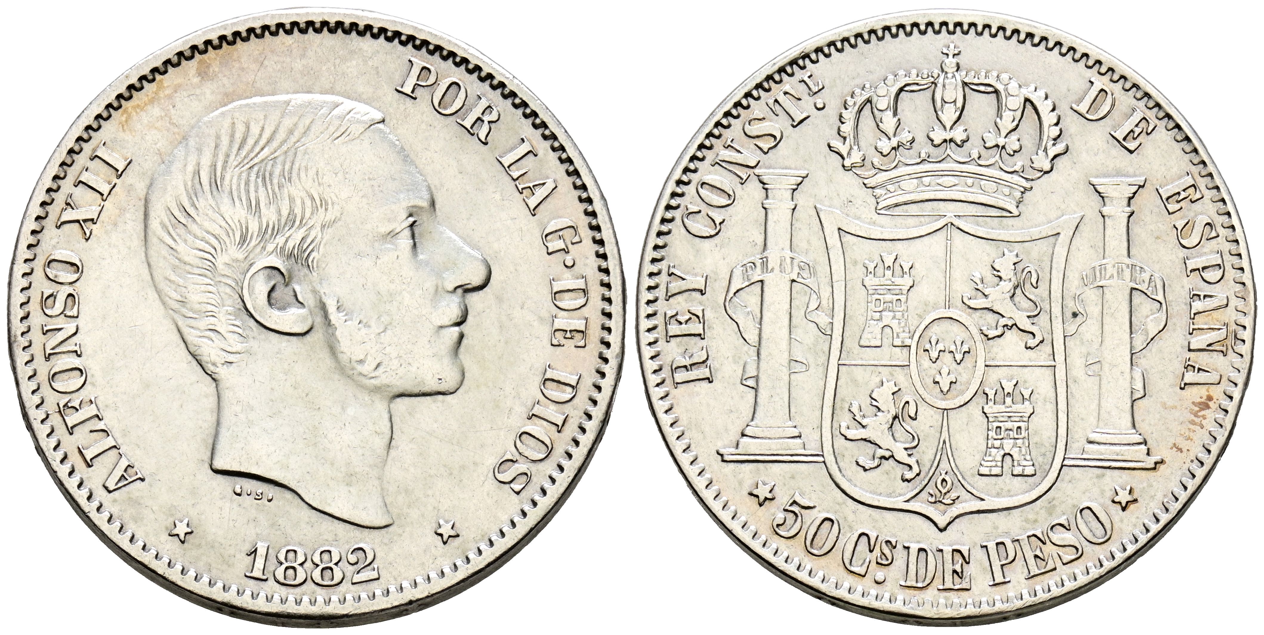 ALFONSO XII (1874-1885). 50 Centavos. (Ar. 12,62g/30mm). 1882. Manila. (Cal-2019-120). MBC/MBC+.