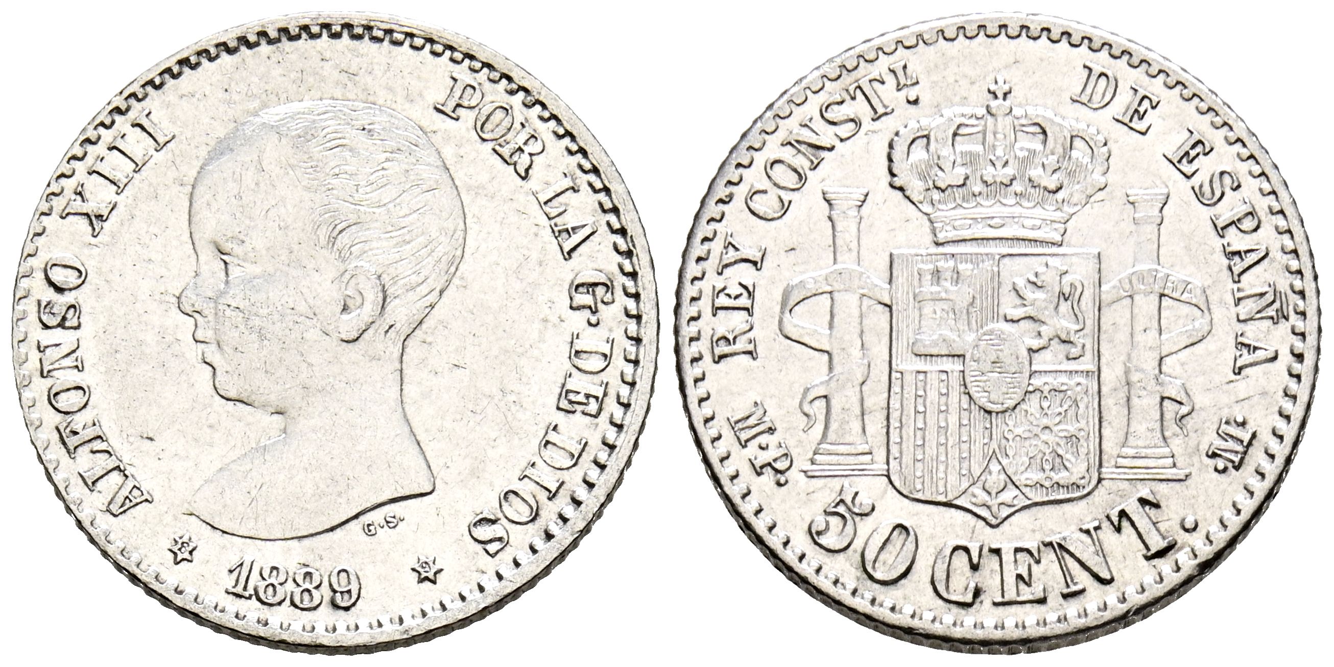 ALFONSO XIII (1885-1931). 50 Céntimos. (Ar. 2,51g/18mm). 1889 *8-9. Madrid MPM. (Cal-2019-27). EBC-.