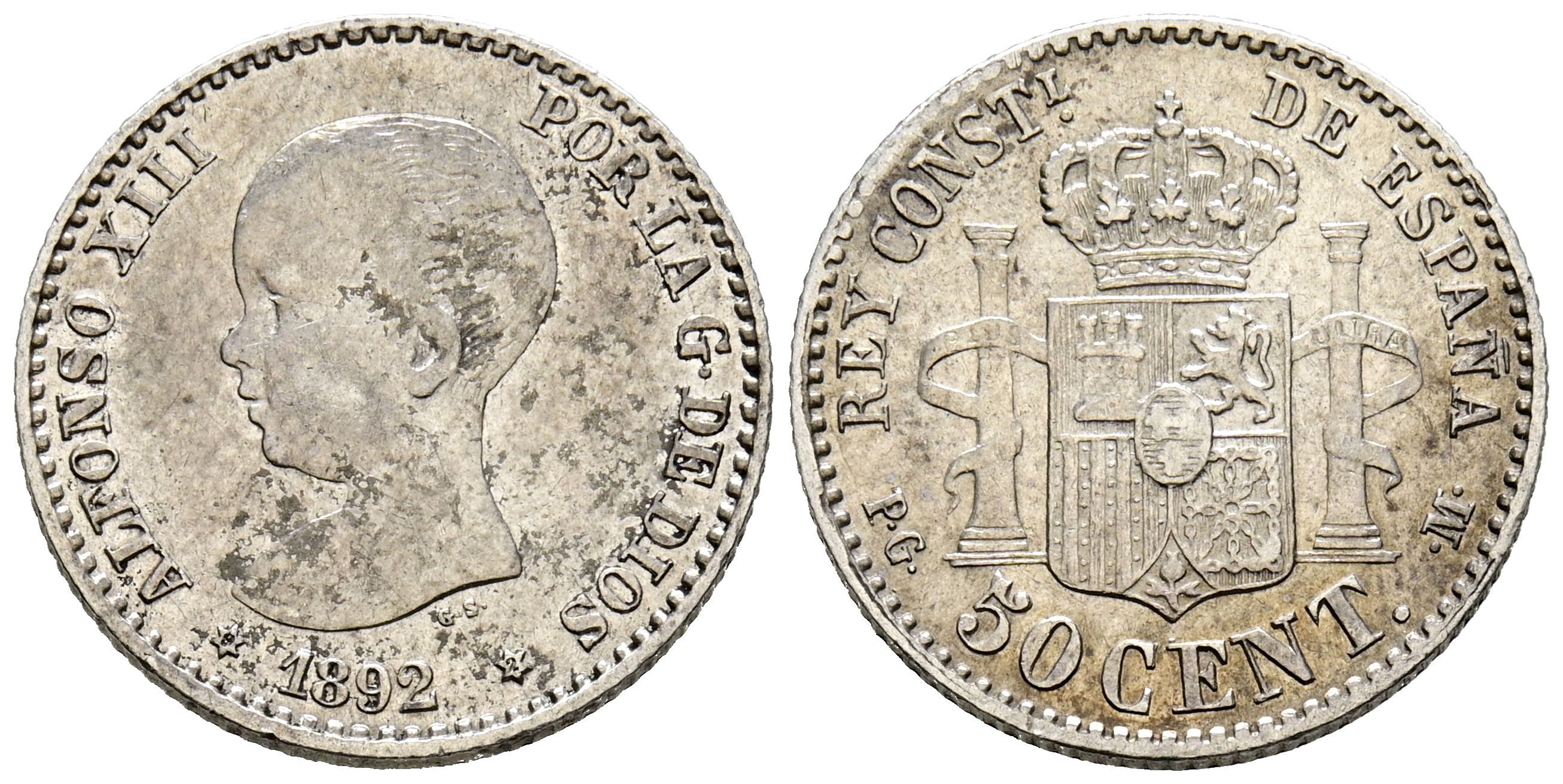 ALFONSO XIII (1885-1931). 50 Céntimos. (Ar. 2,46g/18mm). 1892 *9-2. Madrid PGM. (Cal-2019-38). MBC+. Restos de brillo original.