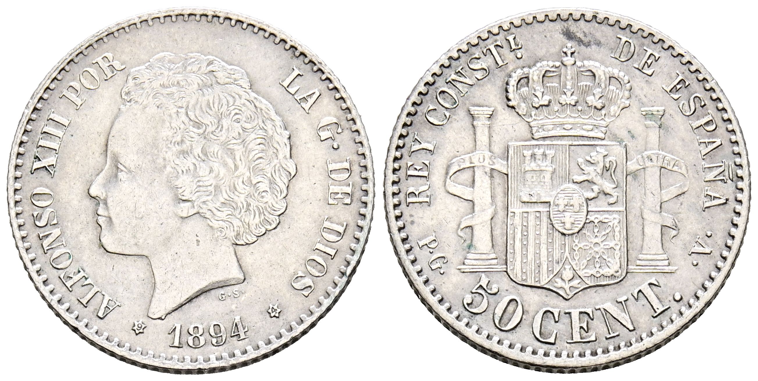ALFONSO XIII (1885-1931). 50 Céntimos. (Ar. 2,51g/18mm). 1894 *9-4. Madrid PGV. (Cal-2019-43). EBC-.
