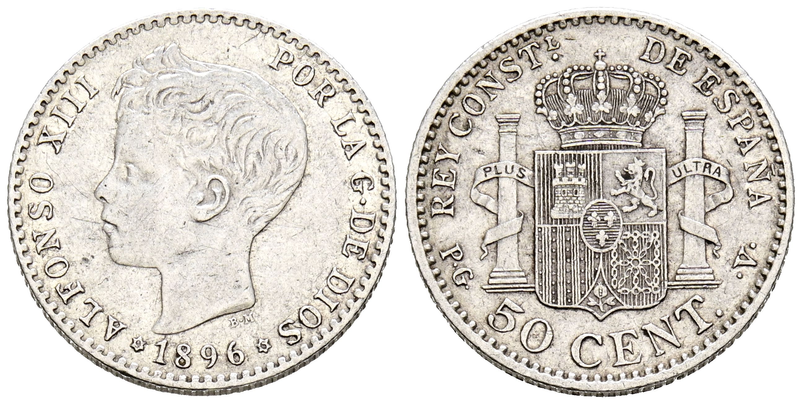 ALFONSO XIII (1885-1931). 50 Céntimos (Ar. 2,47g/18mm). 1896 *9-6. Madrid PGV. (Cal-2019-44). MBC+. Restos de brillo original.
