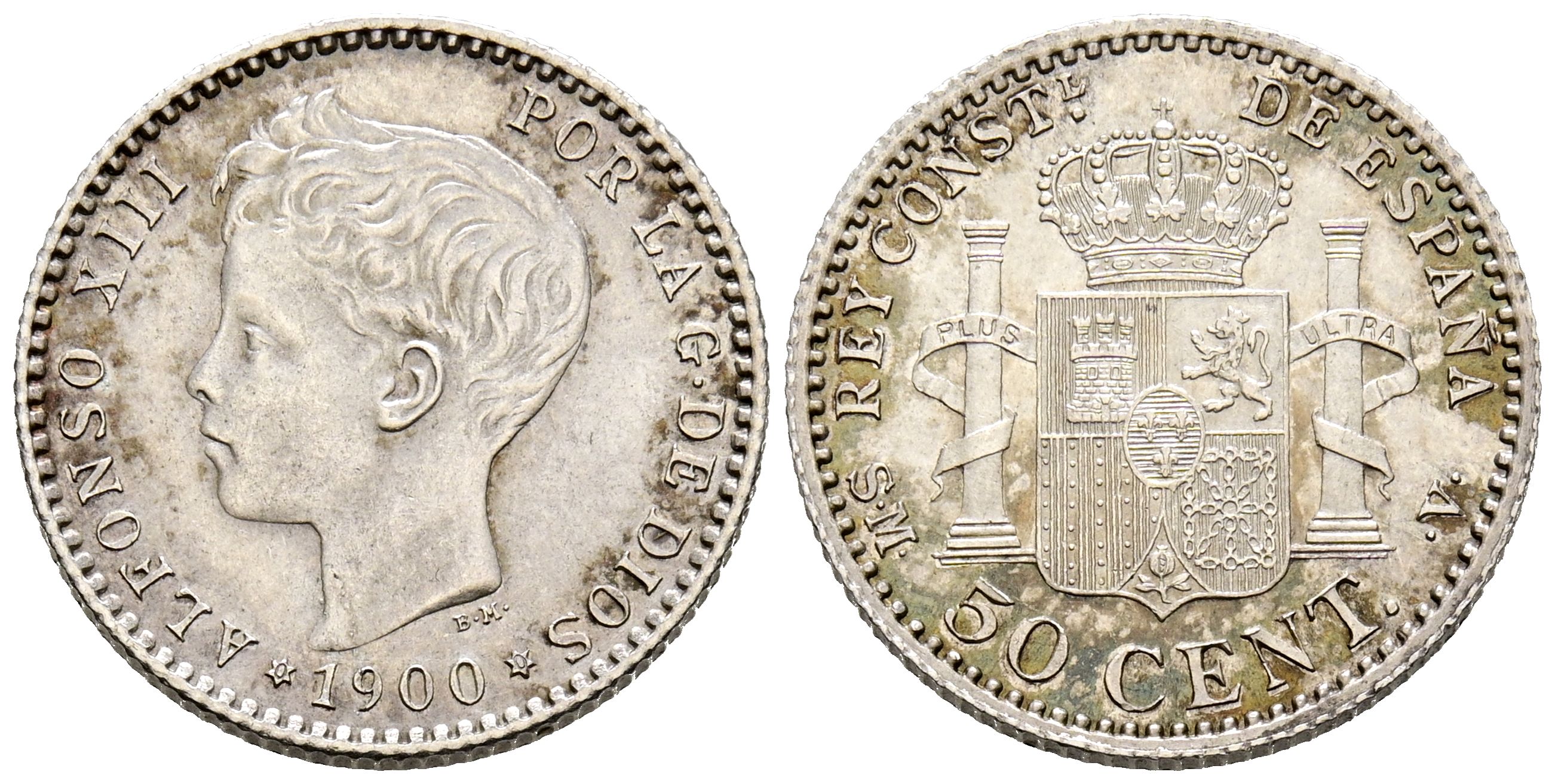 ALFONSO XIII (1885-1931). 50 Céntimos. (Ar. 2,45g/18mm). 1900 *0-0. SMV de Madrid. (Cal-2019-45). EBC-. Restos de brillo original.