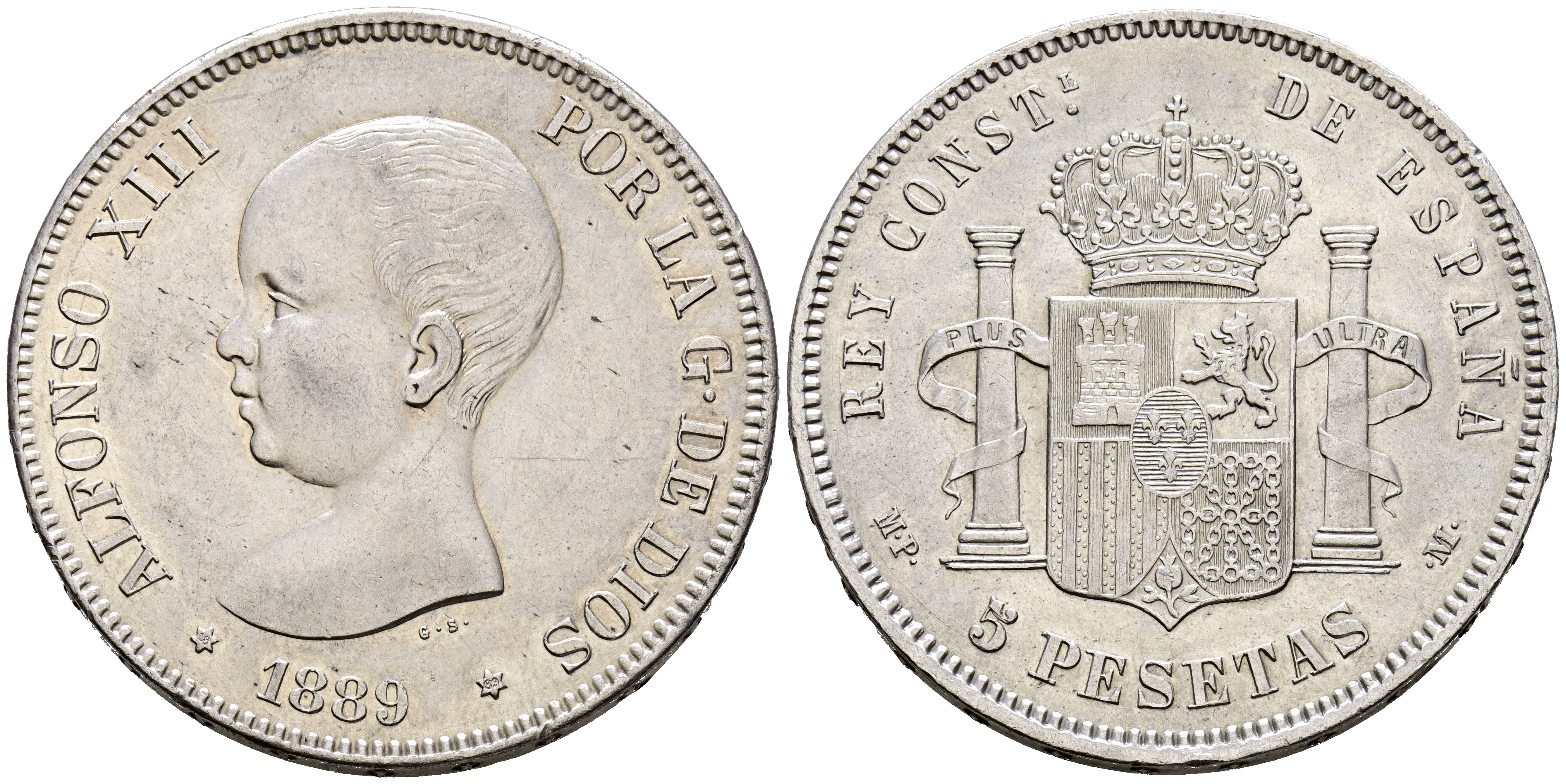 ALFONSO XIII (1885-1931). 5 Pesetas. (Ar. 24,83g/37mm). 1889 *18-89. Madrid MPM. (Cal-2019-93). EBC-.