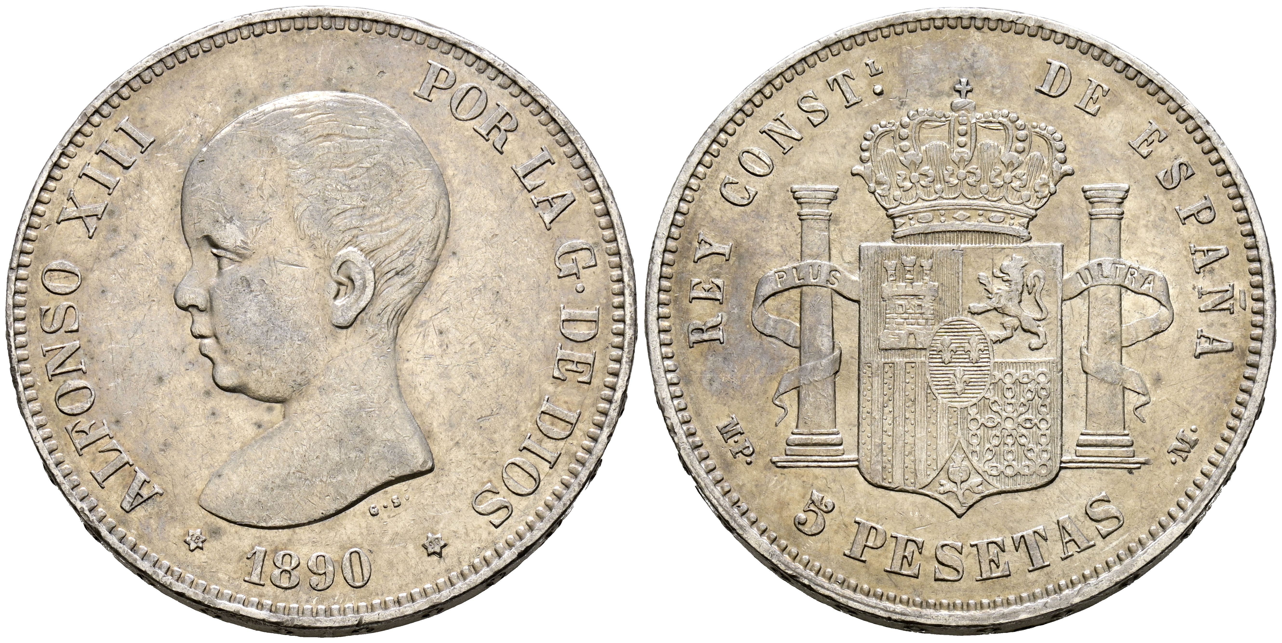 ALFONSO XIII (1885-1931). 5 Pesetas. (Ar. 25,02g/37mm). 1890 *18-90. Madrid PGM. (Cal-2019-97). EBC-.