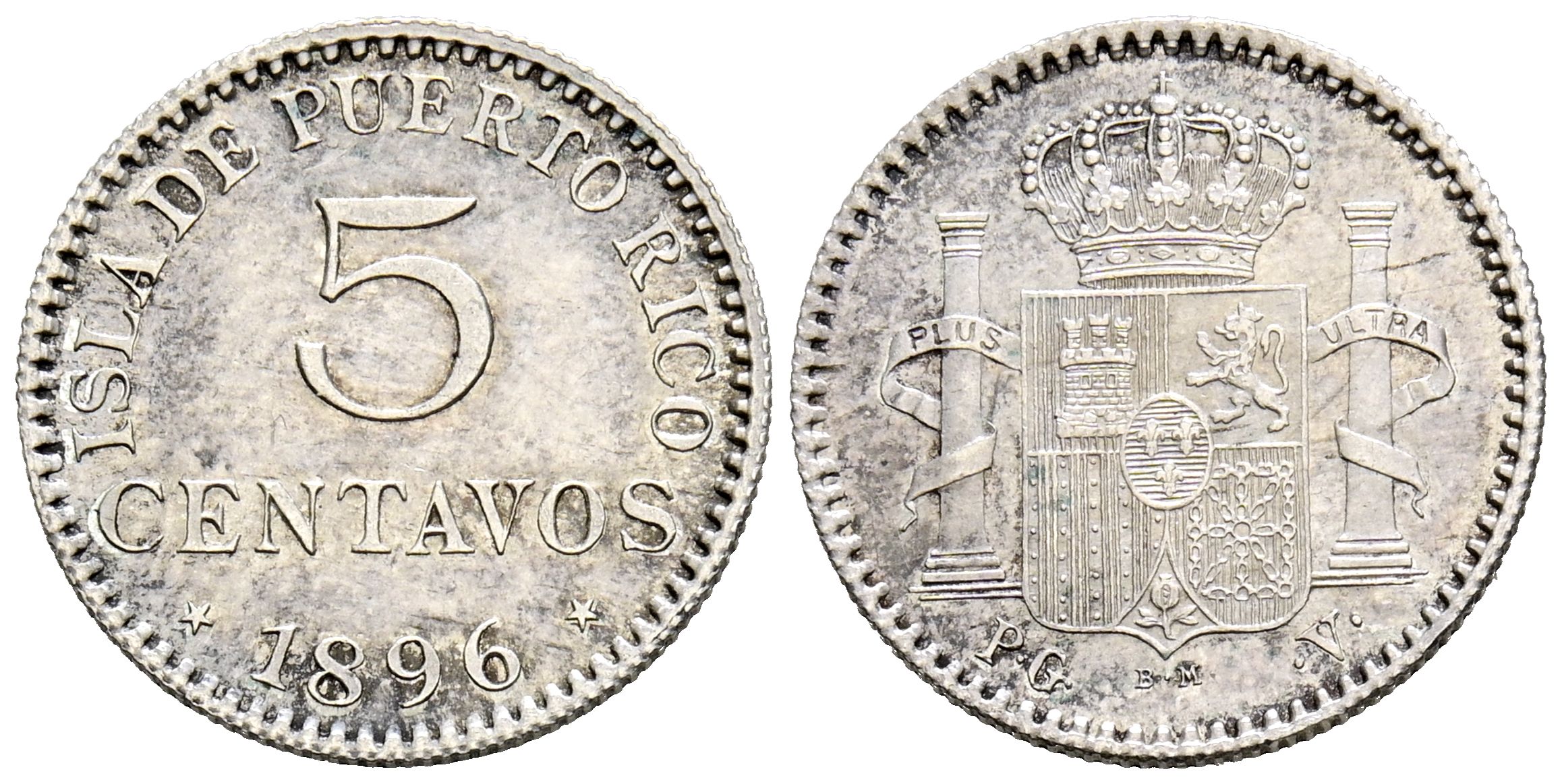ALFONSO XIII (1885-1931). 5 Centavos (Ar. 1,32g/16mm). 1896. Puerto Rico. PGV (Cal-2019-124). EBC. Restos de brillo original.