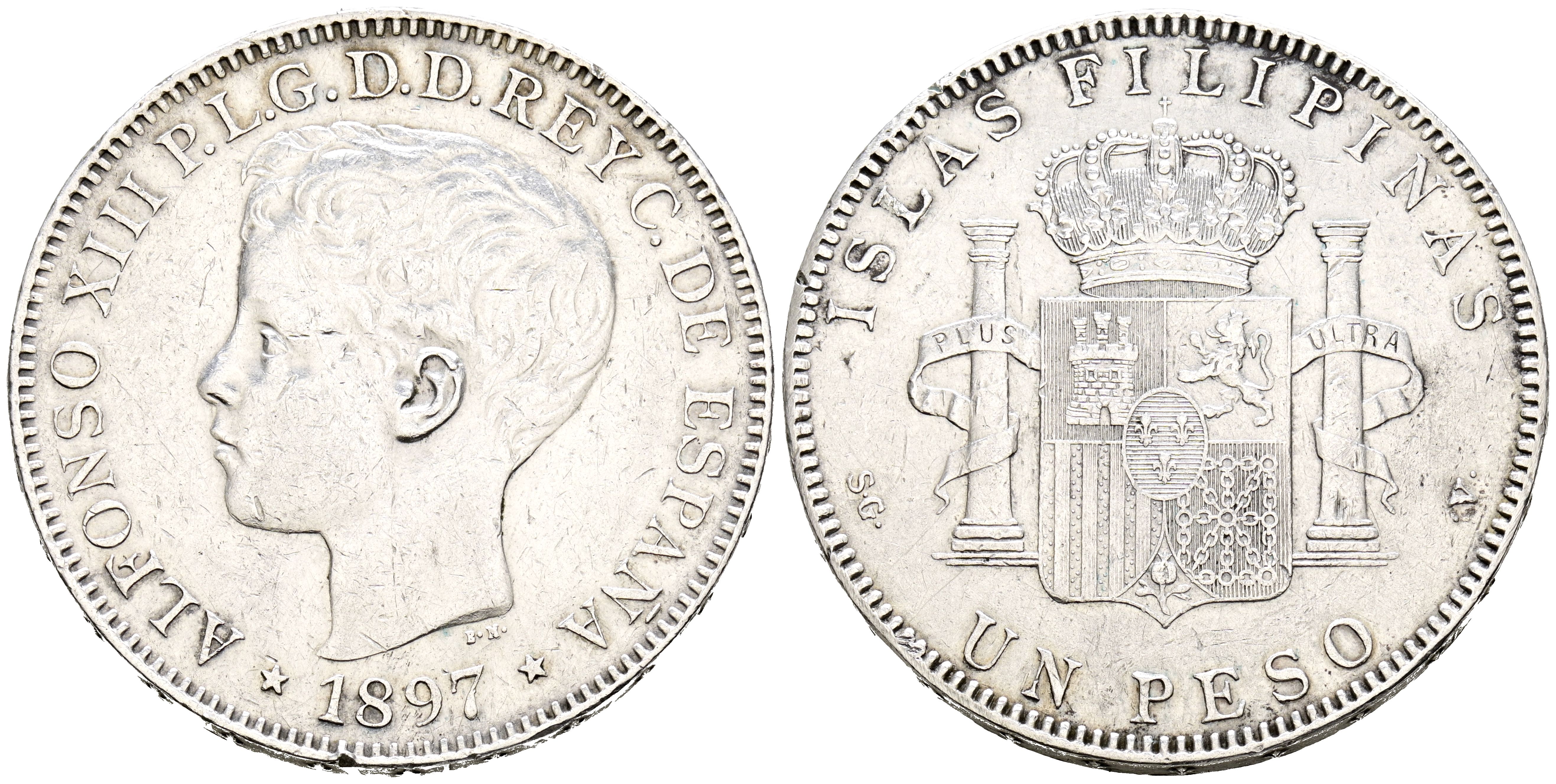 ALFONSO XIII (1885-1931). 1 Peso. (Ar. 24,74g/37mm). 1897. Manila SGV. (Cal-2019-122). MBC. Limpiado.