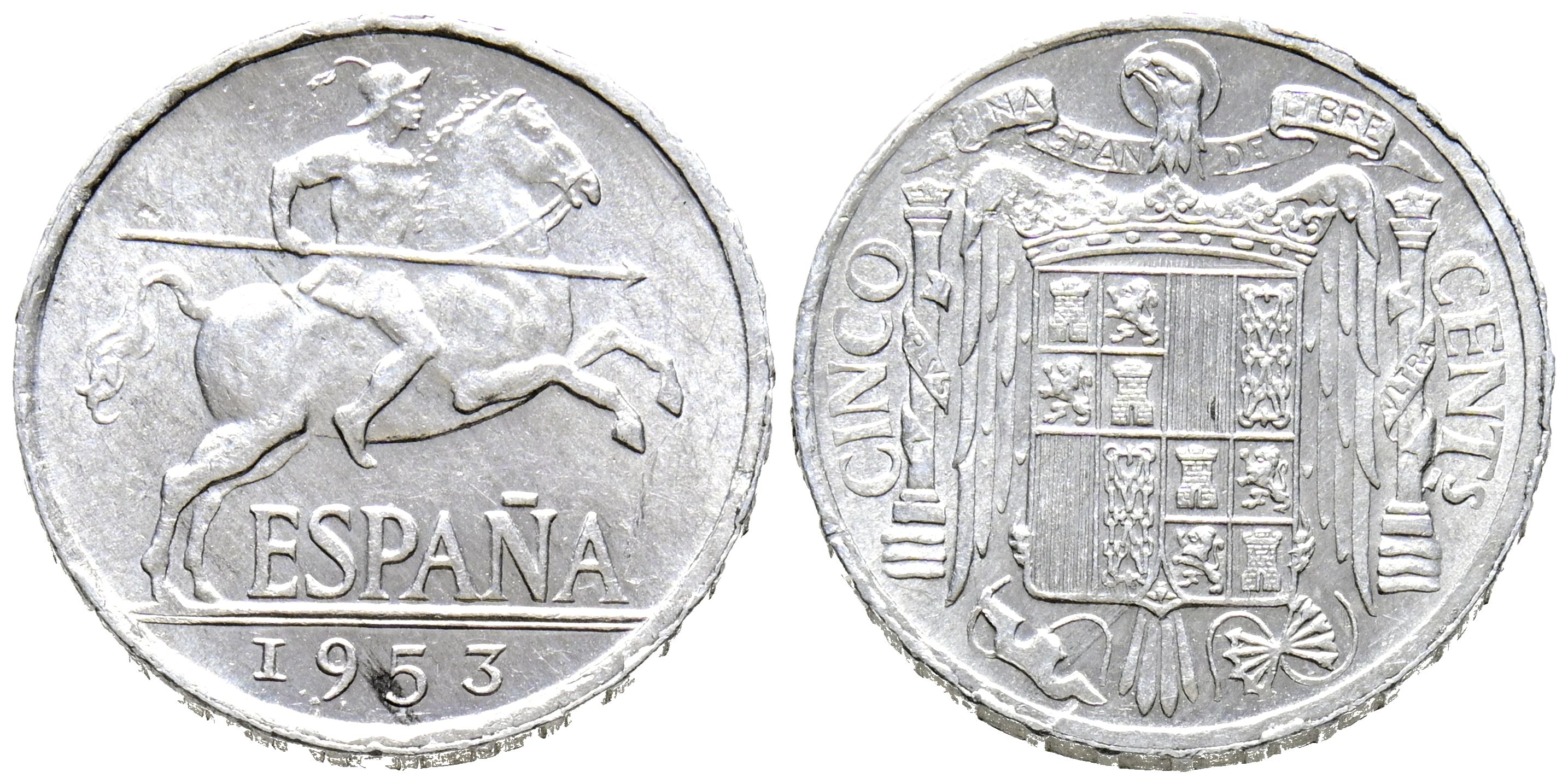 ESTADO ESPAÑOL. 5 Céntimos. (Al. 1,12g/20mm). 1953. Madrid. (Cal-2019-4). EBC+.