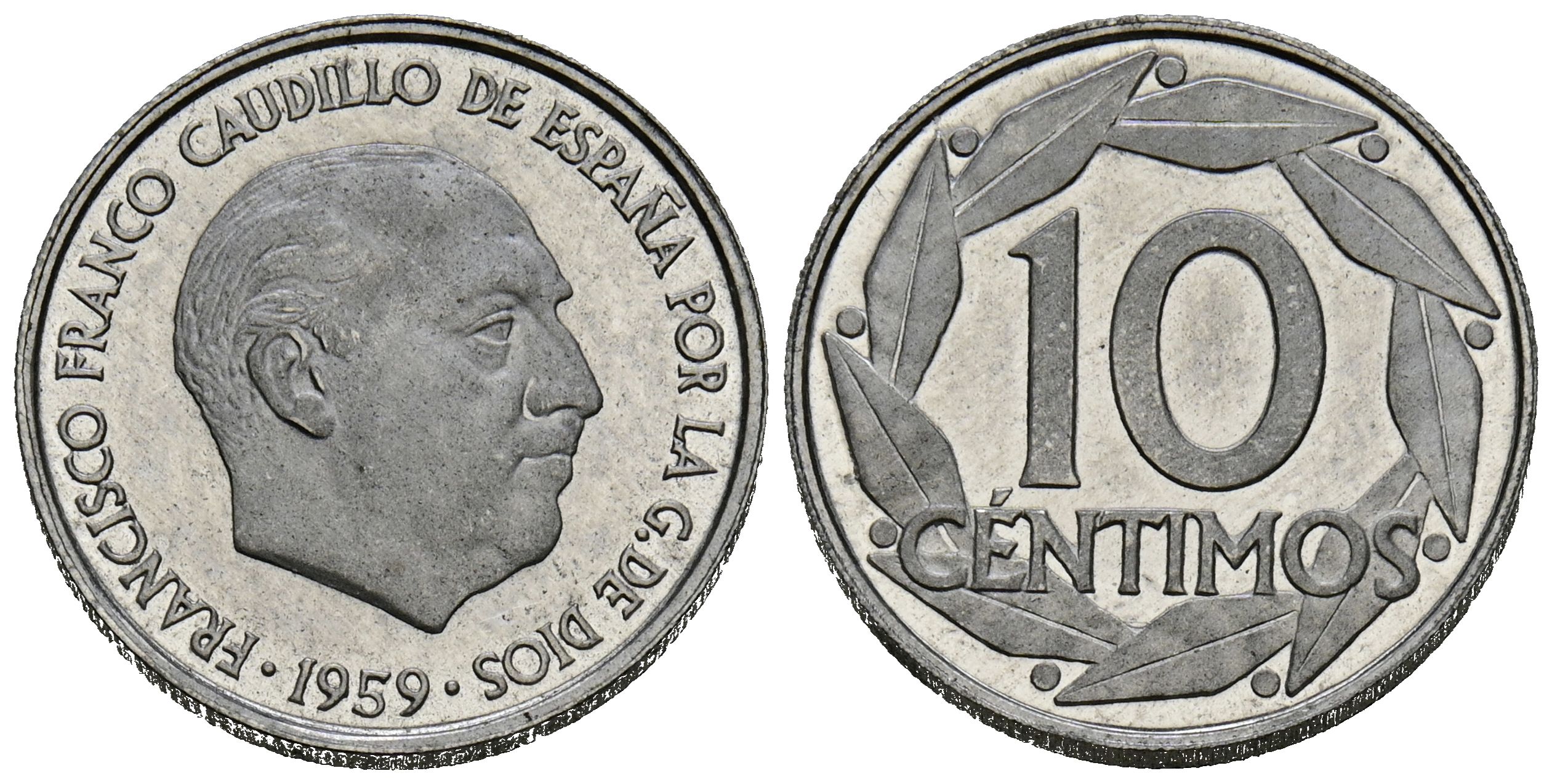ESTADO ESPAÑOL (1936-1975). 10 Céntimos. (Al. 0,73g/17mm). 1959. Madrid. (Cal-2019-16). PROOF.
