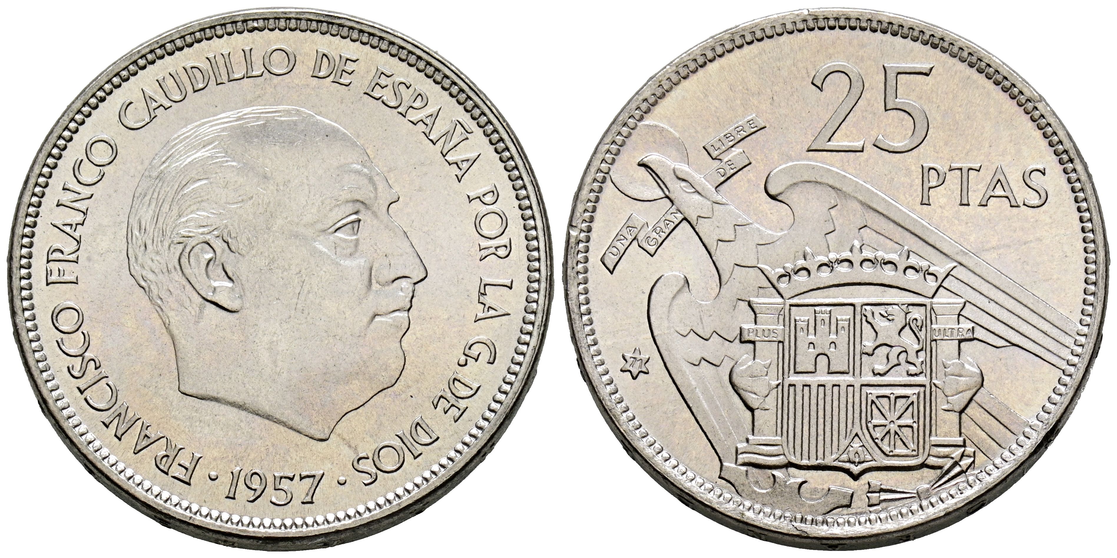 ESTADO ESPAÑOL (1939-1975). 25 Pesetas. (Ni. 8,55g/27mm). 1957 *19-71. Madrid. (Cal-2019-126). SC.