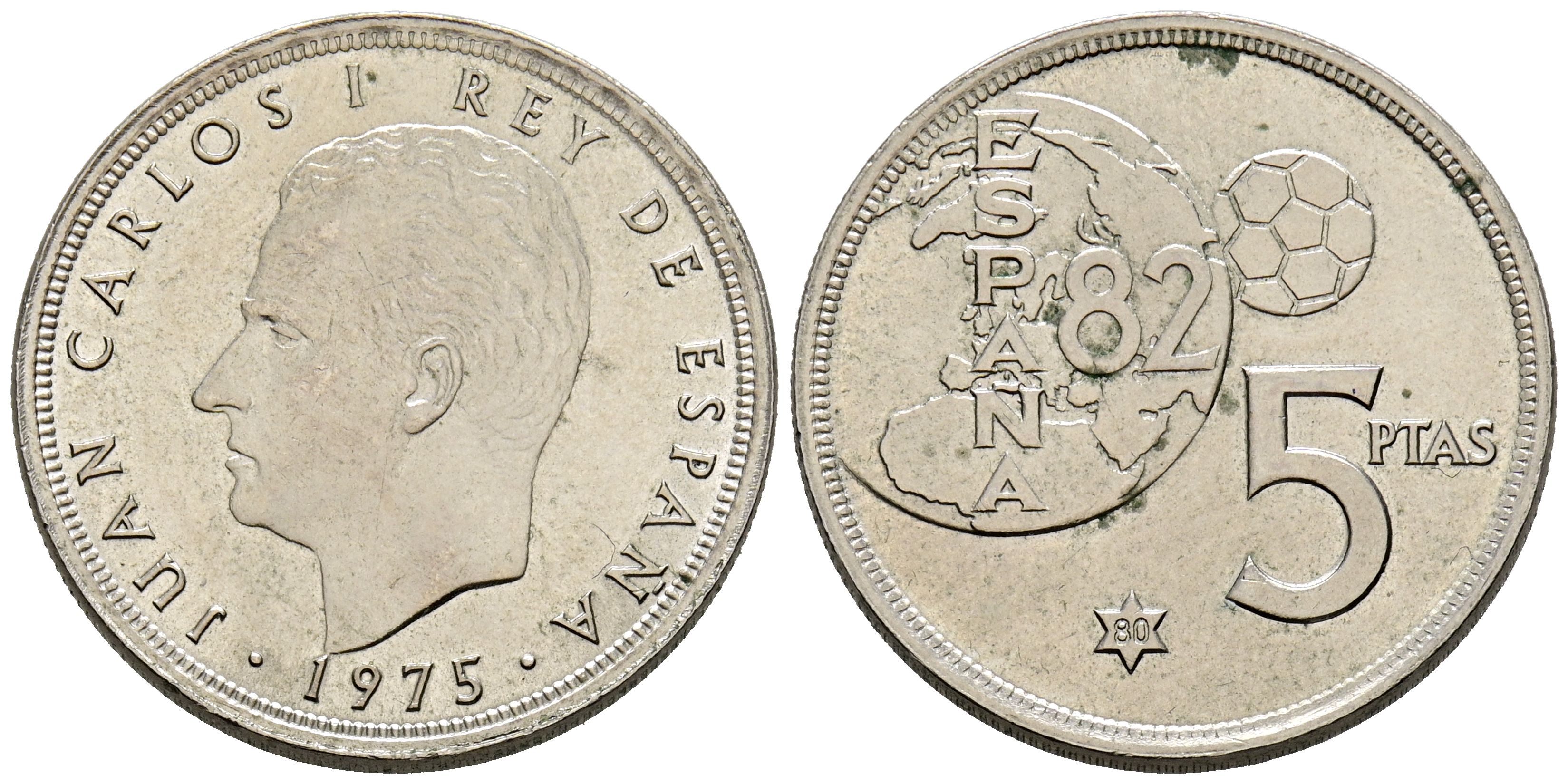 JUAN CARLOS I (1975-2014). 5 Pesetas. (CuNi. 5,72g/23mm). 1975 *80. (Cal-2019-40). Error del Mundial ´82. EBC+.