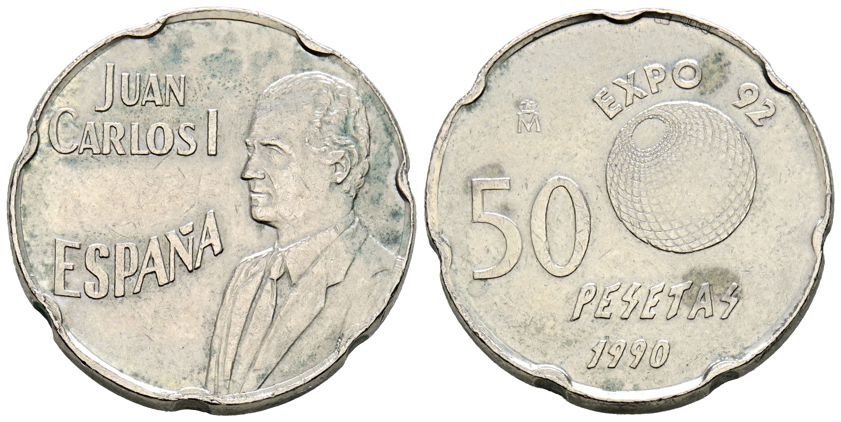 JUAN CARLOS I (1975-2014). 50 Pesetas. (Cu-Ni. 5,53g/20mm). 1990. (Cal-2019-111). Error del Pantógrafo (Busto y globo terraqueo más grandes). MBC+.