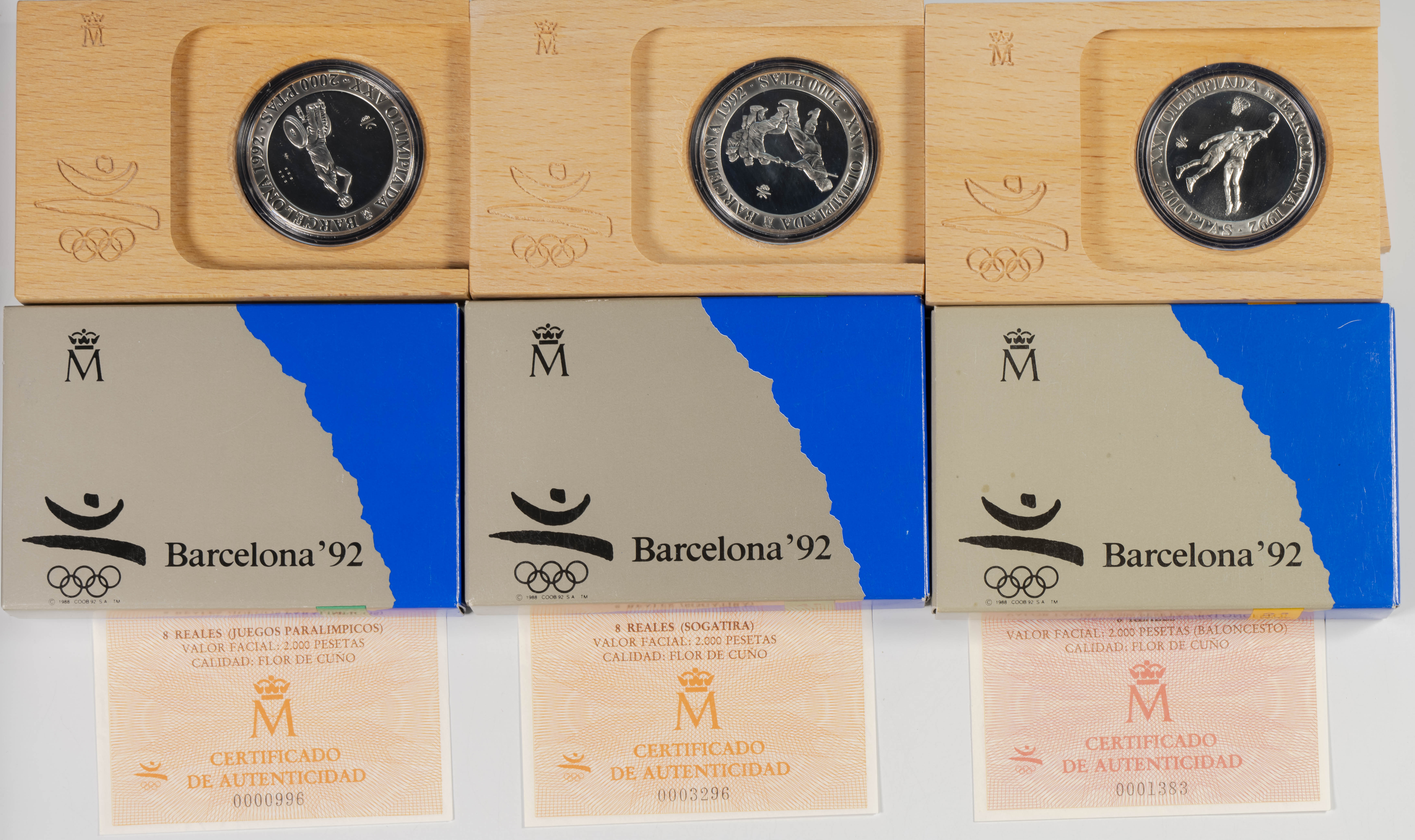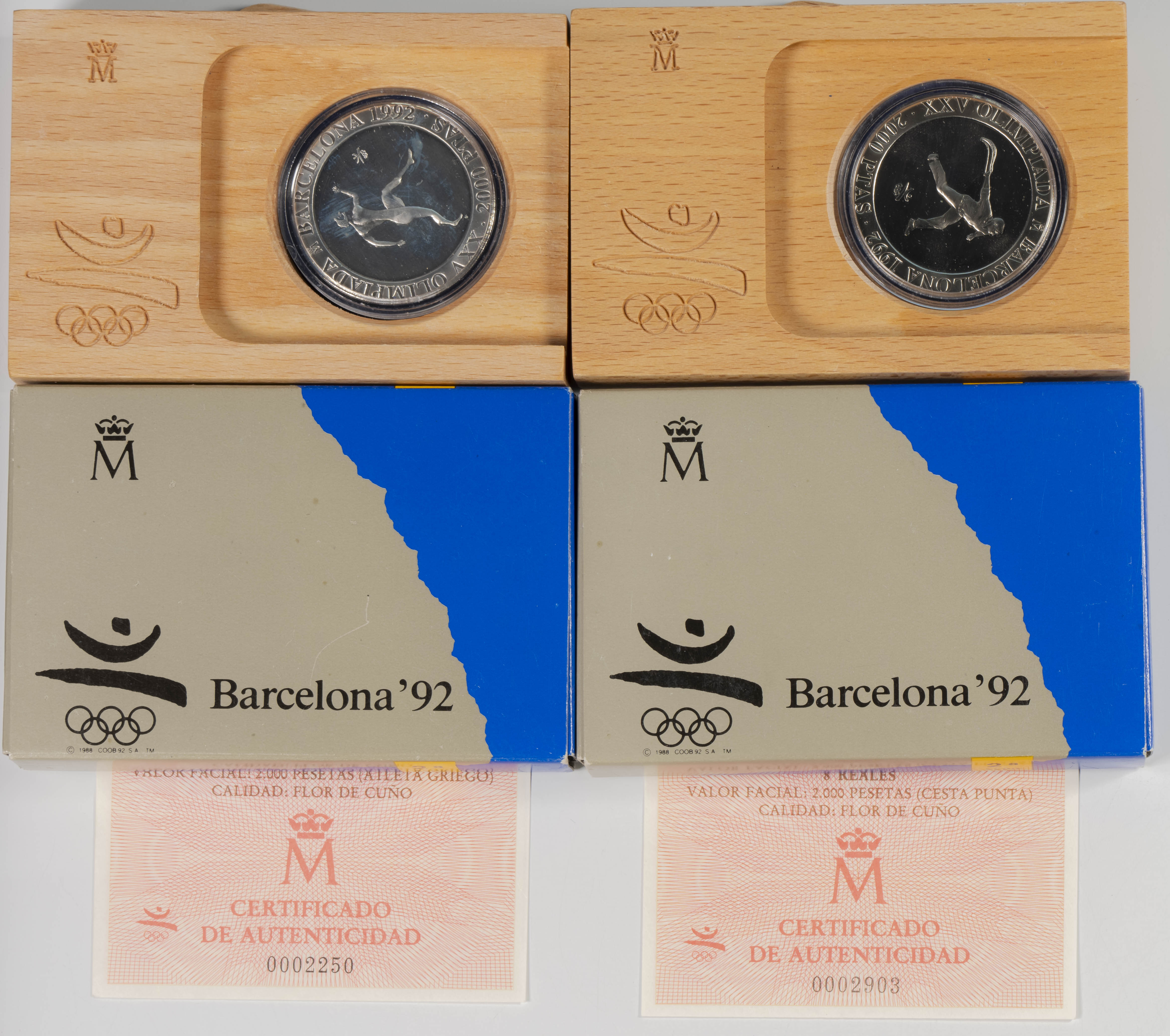 JUAN CARLOS I (1975-2014). Serie completa (I, II, III y IV) de las Olimpiadas de Barcelona 92. 1990-1992. FNMT. 16 estuches en perfecto estado y sin repeticiones. FDC. A EXAMINAR