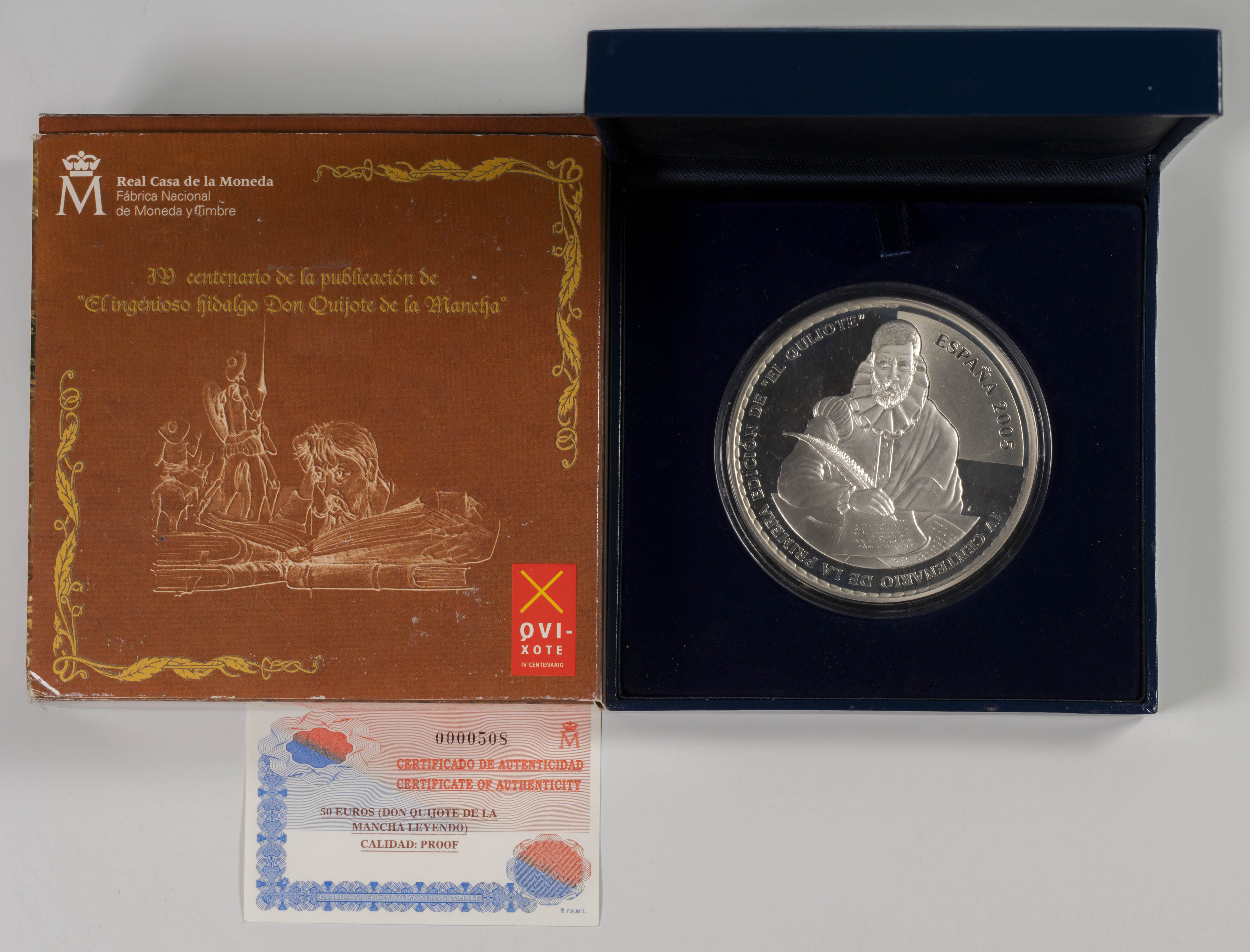 JUAN CARLOS I (1975-2014). 50 Euros. (Ar. 168.75g/73mm). Don Quijote de La Mancha. 2005. FNMT. PROOF. Incluye estuche original y certificado de autenticidad. Tirada de 12.000 unidades.