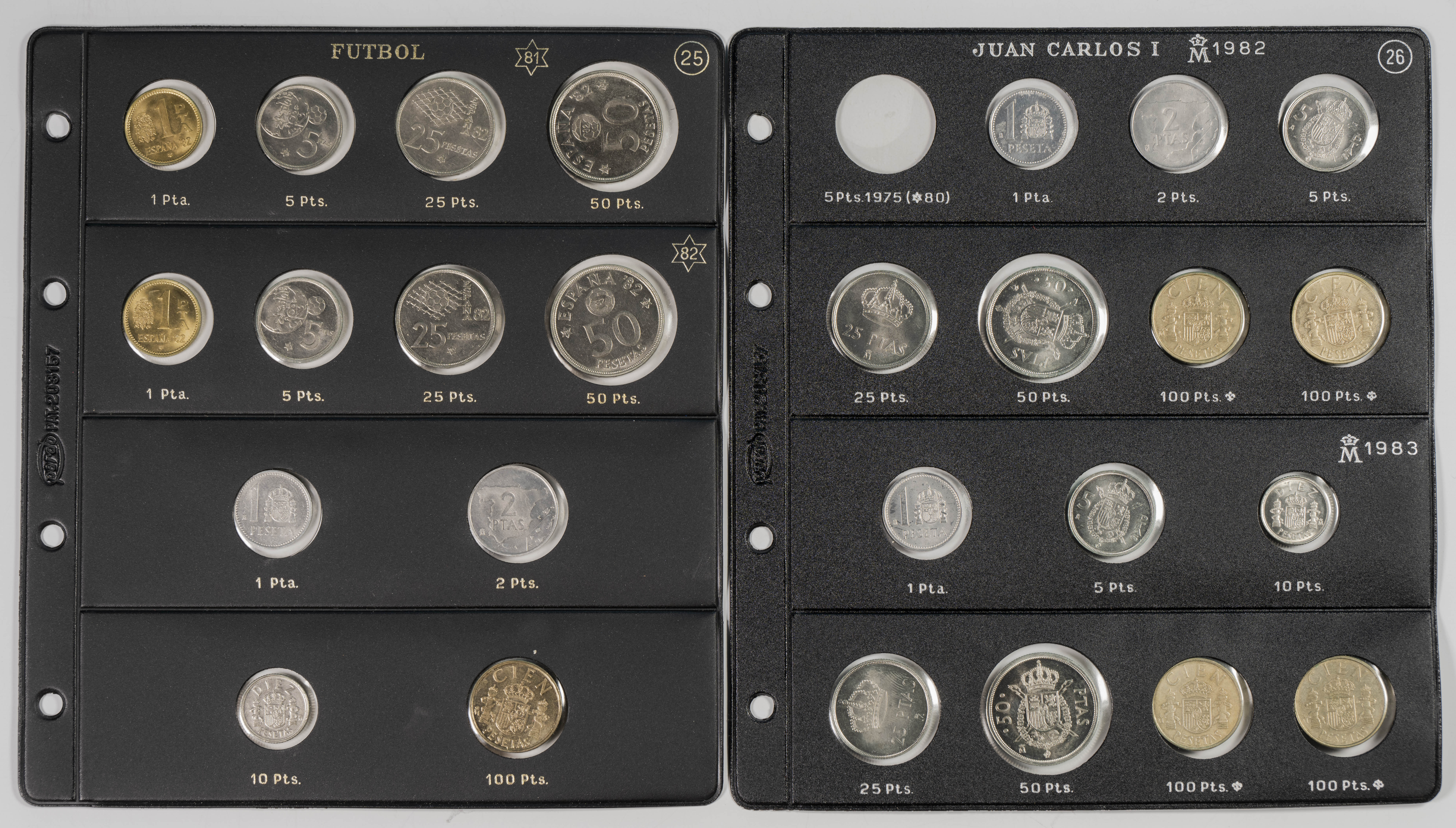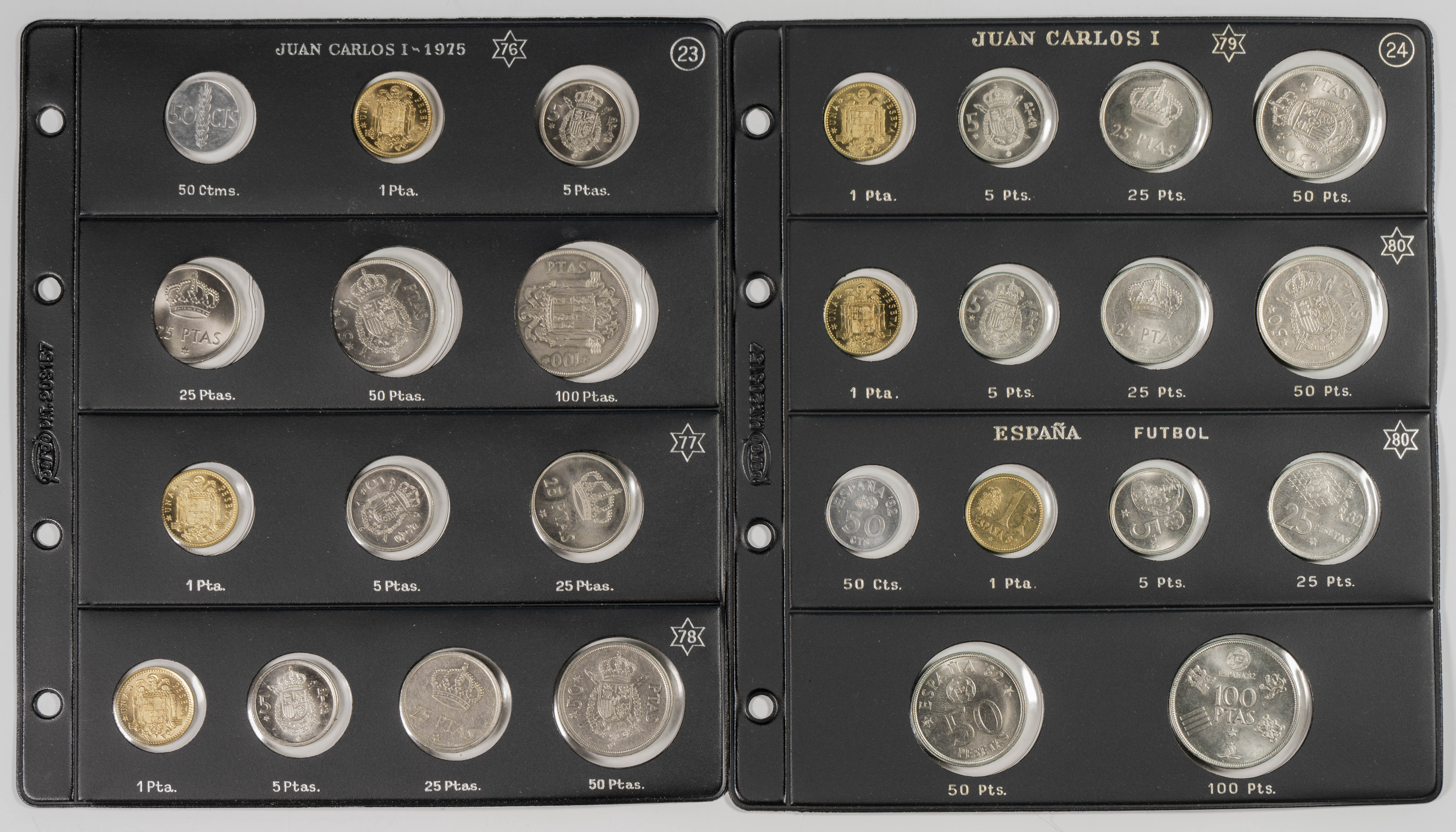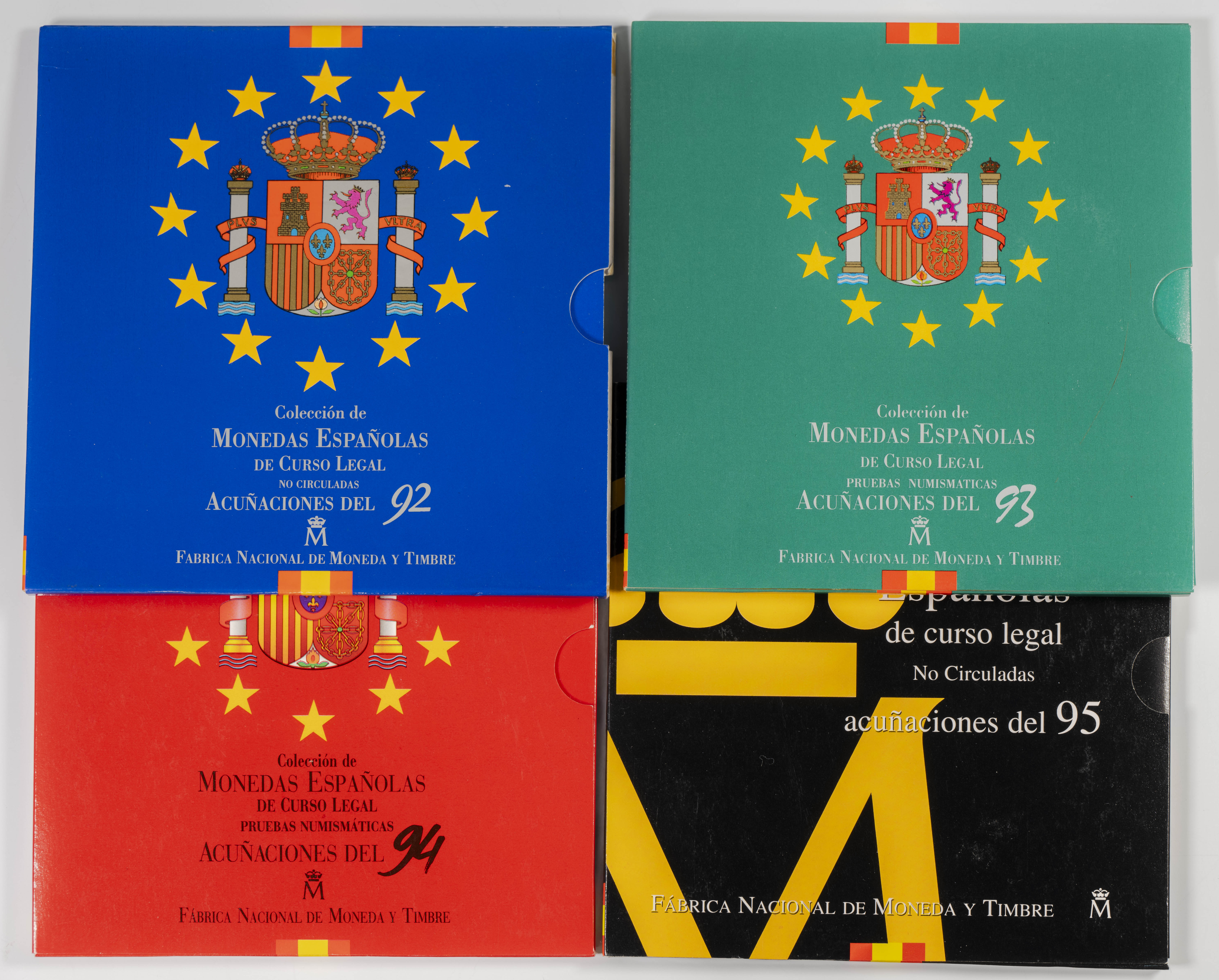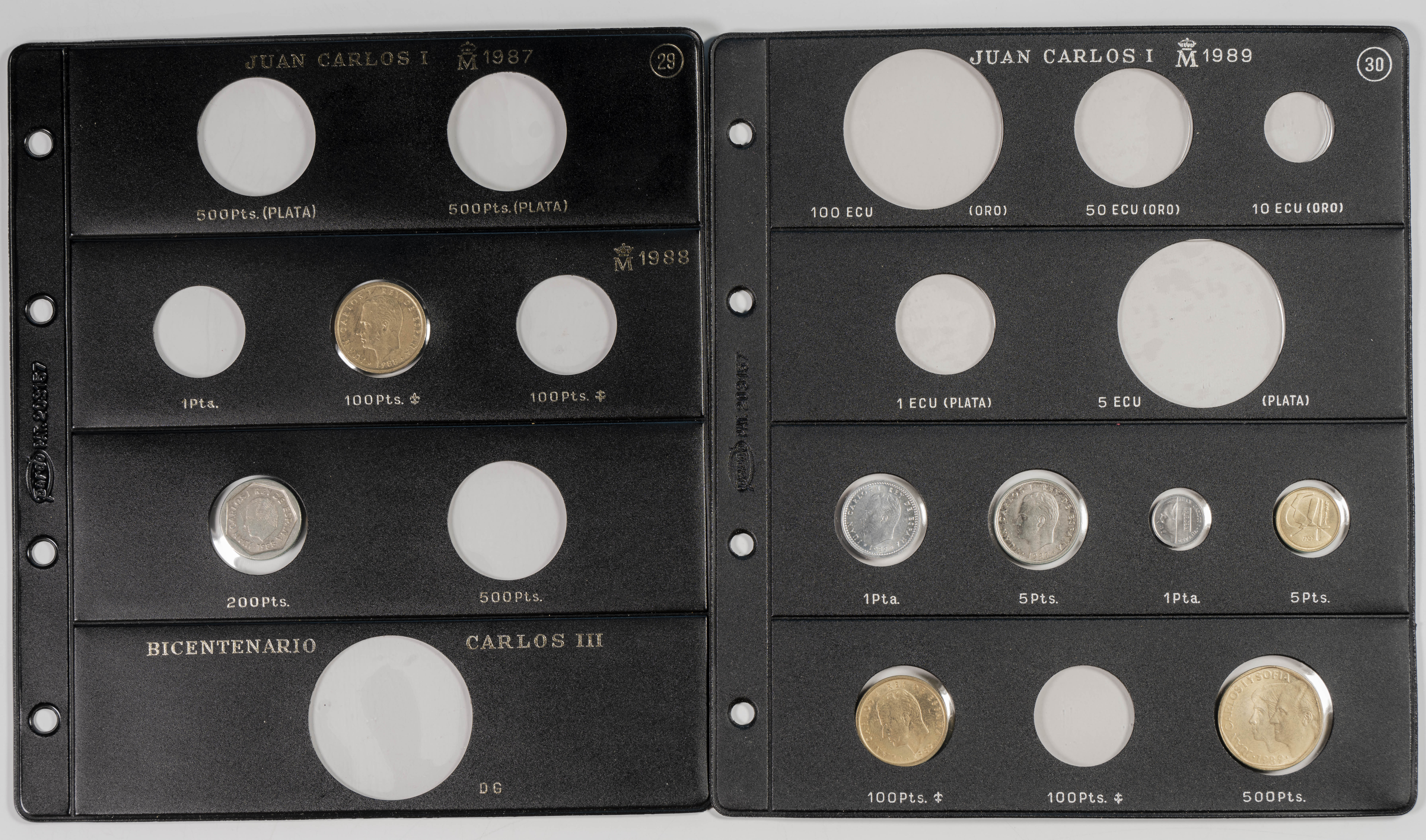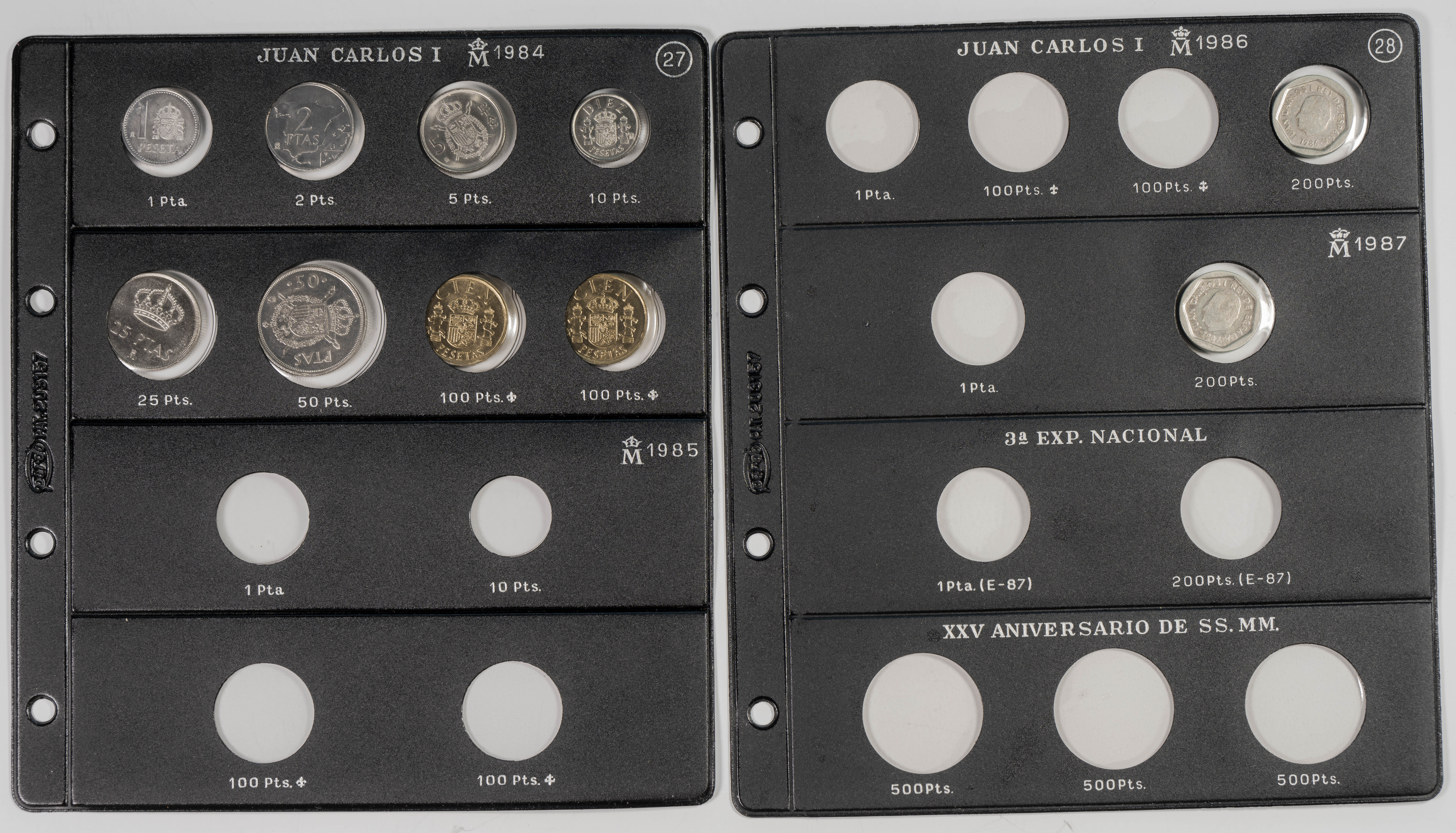JUAN CARLOS I (1975-2014). Pequeña colección formada por alrededor de 100 piezas expuesta en álbum Pardo y completadas con las carteras de los años 1992, 1993, 1994 y 1995. FNMT. Madrid. Excelente estado de conservación general. A EXAMINAR.